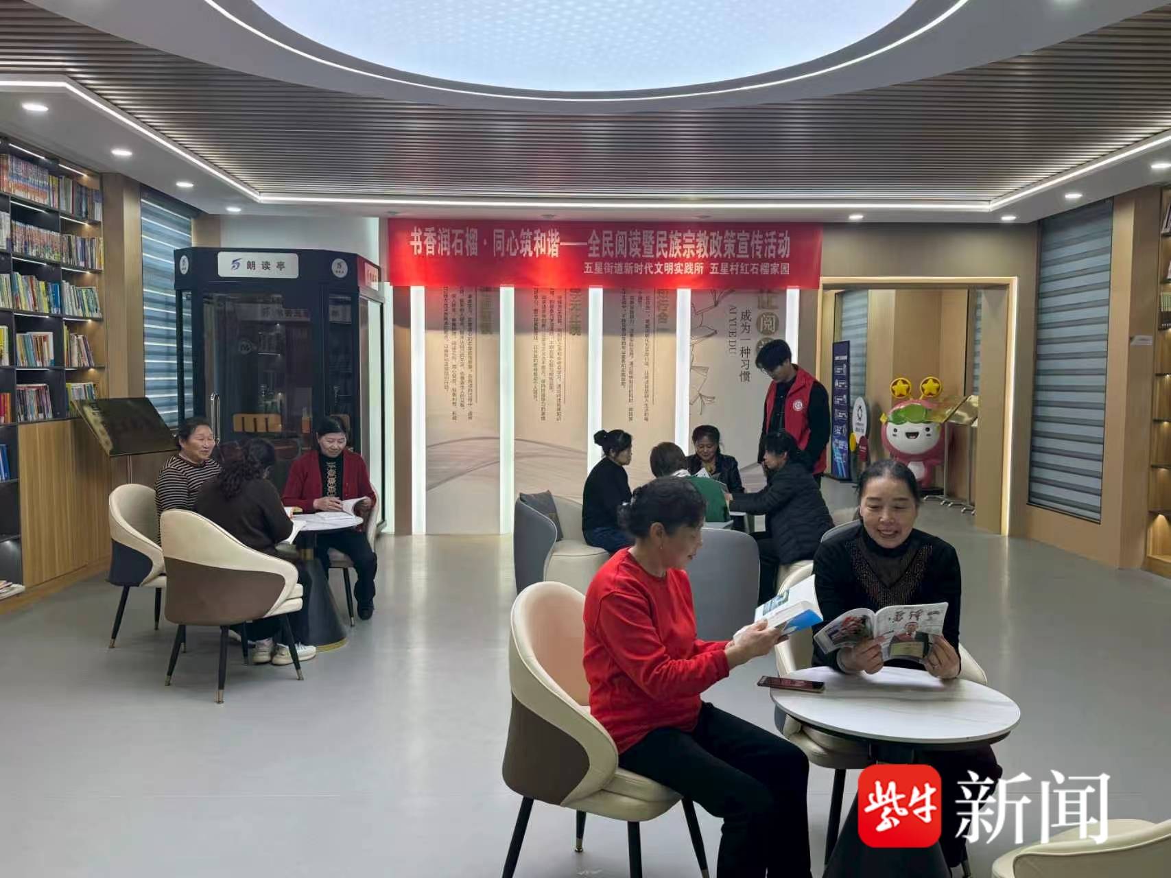 为深入铸牢中华民族共同体意识,持续深化辖区全民阅读良好氛围,切实普及民族宗教政策法规、弘扬民族团结正能量,4月22日,盐城市亭湖区五星街道五星村精心组织开展“书香润石榴•同心筑和谐”全民阅读暨民族宗教政策宣传活动,邀请辖区少数民族群众、村民代表、党员志愿者齐聚一堂,以书为媒架起沟通桥梁,以学聚力共筑和谐家园。