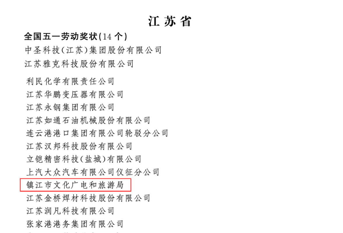 祝贺!镇江市文化广电和旅游局被授予2026年“全国五一劳动奖状”