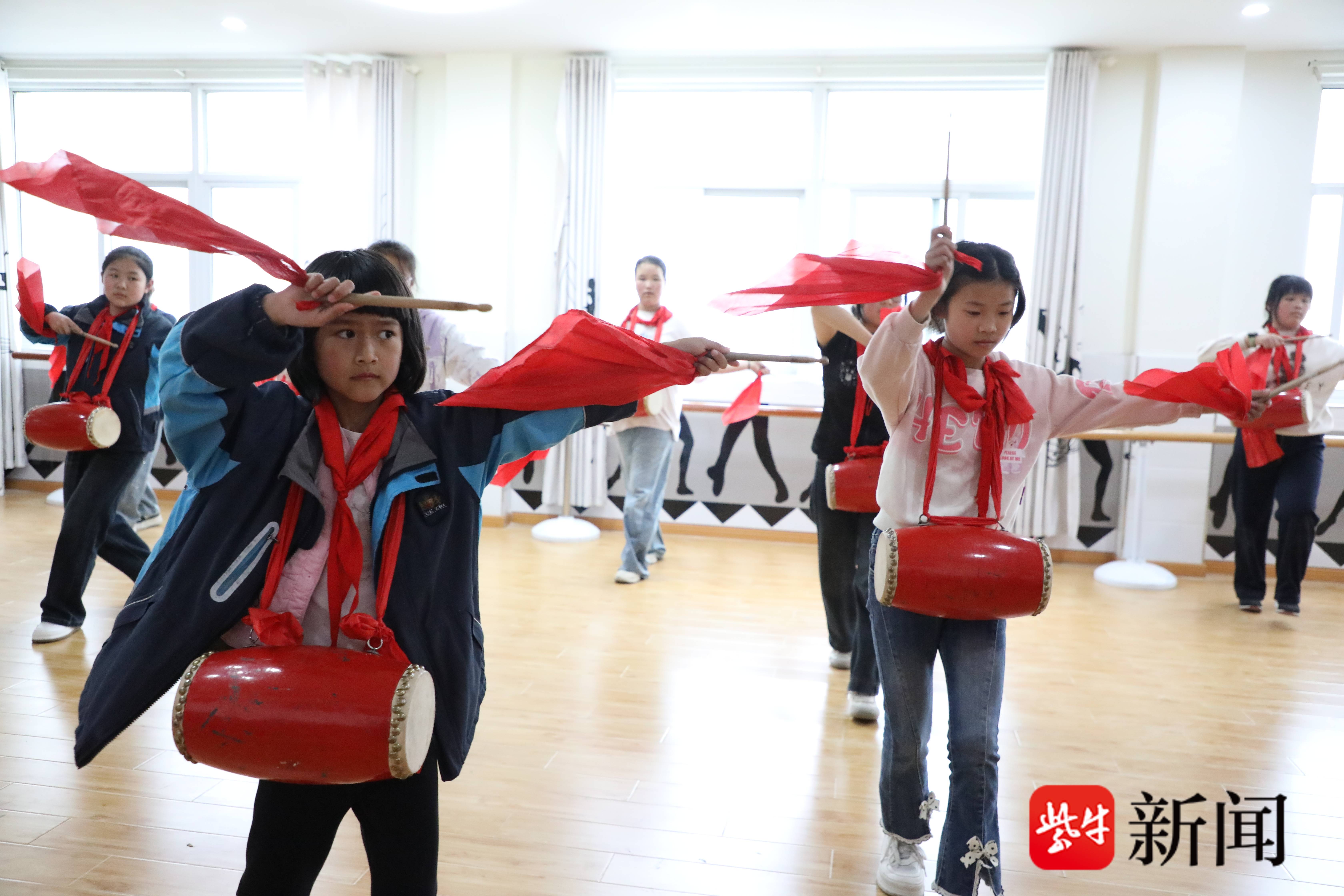 腰鼓是射阳县海通小学非遗课程。日常训练时,腰鼓队社团的孩子们身着腰鼓服,伴着明快鼓点扭摆身姿、踏步行进,举手投足间,既有陕北人豪迈洒脱的精气神,又透着青少年认真投入的劲头。“参加腰鼓队社团不但能锻炼身体,还能亲身感受陕北秧歌独有的文化魅力,心里特别光荣和自豪。我要好好学、好好练,把这项珍贵的非遗传承下去。”参训学生周欣妍说。