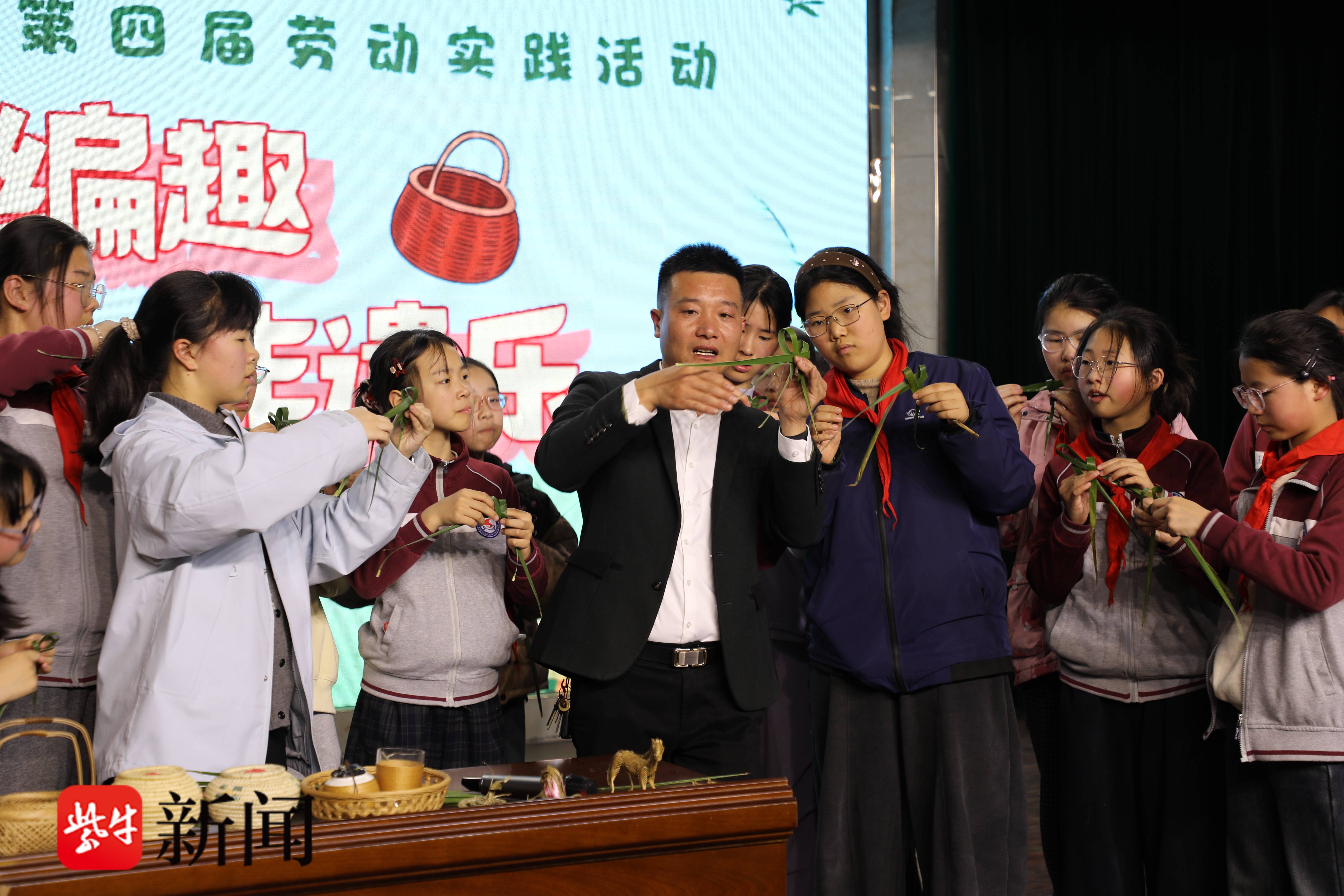 4月27日,射阳县小学校园内,一场“草编趣,非遗乐”实践体验活动正在火热举行。