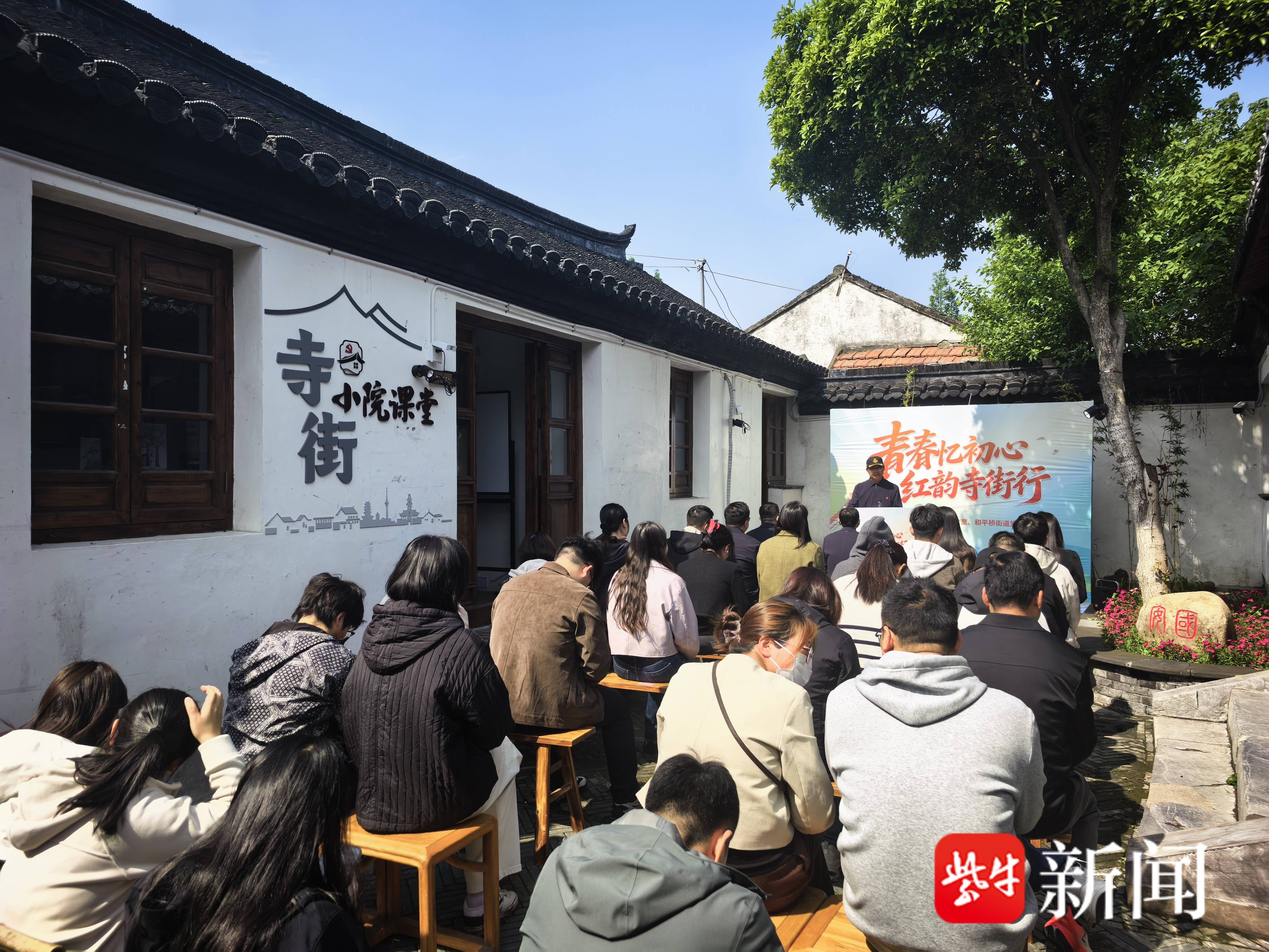 4月30日上午,春光明媚,红韵悠扬。第三期“江海砥柱”青训营党的建设研学社成员,与南通市委党史工作办公室、崇川区和平桥街道的党员干部及团员青年齐聚寺街,共同开展“青春忆初心 红韵寺街行”主题研学活动。本次活动是青训营深化“学研结合、知行合一”培养模式的重要实践,通过深度对接党建资源,引导学员在行走红色地标中感悟初心,在与革命历史对话中坚定信仰,在课题研究与基层实践融合中提升本领。