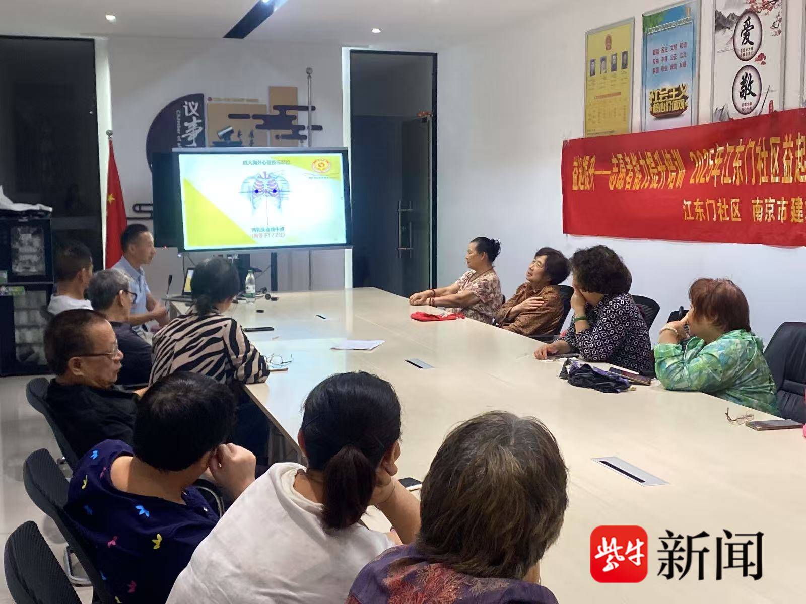 这场活动是江东门社区在9月25日联合南京市建邺区尚满天居家养老服务中心举行的,邀请了江苏省首席科技传播专家、江苏省老科协讲师李颜为社区居民培训应急技能,努力让居民能掌握两三项核心应急技能,提升社区居民的整体应急响应意识。