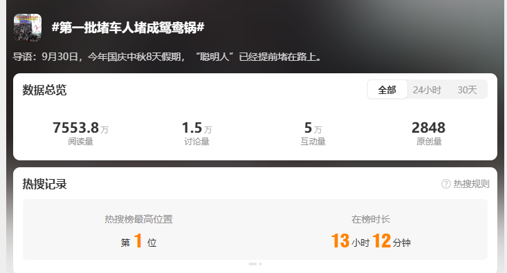 此前,2024年10月1日为469.9万辆,曾创国庆历史新高;2025年5月1日为552.06万辆,为历史最高。