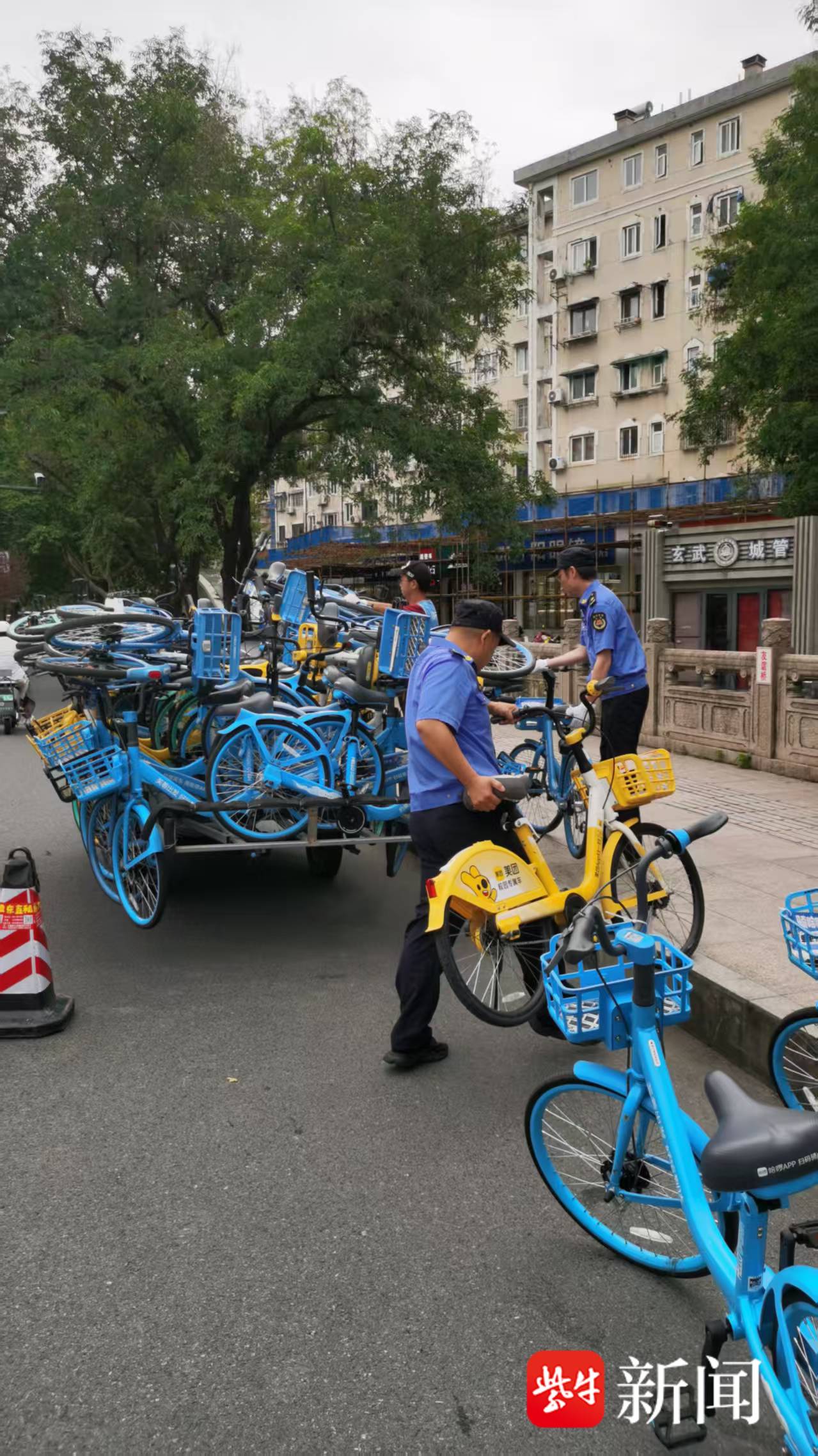 据统计,双节保障期间,玄武区城管局每日出动近400人(含街道协管员),工作时间覆盖早8时至晚21时30分,部分人员24小时在岗处置夜间投诉与渣土管理。每日清理摆放非机动车约1.9万台次,人均近50台次,协助清运维护共享单车1.5万台次。