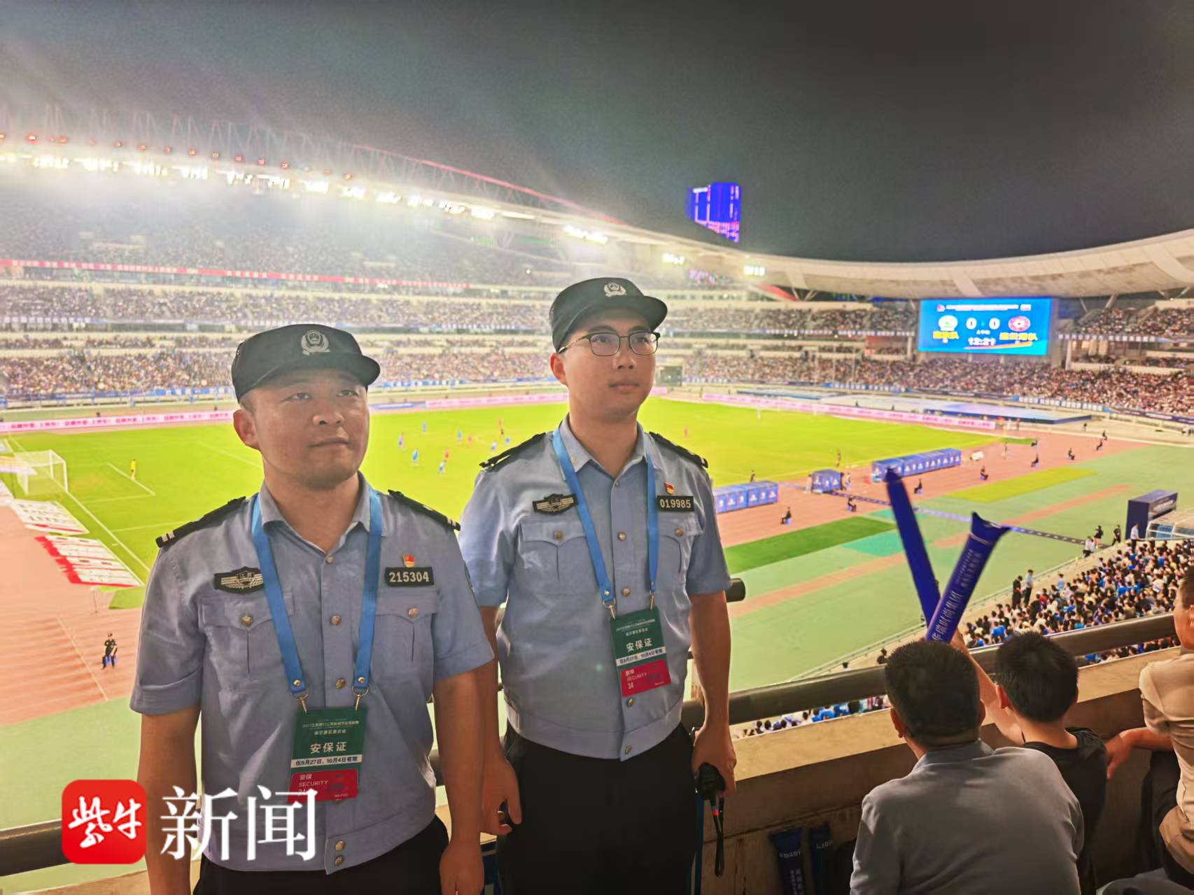 出入境管理支队民警在苏超现场维护看台秩序 。拍摄者:陈逸怡