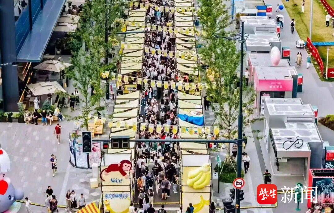 雨花的甜品节,是国庆期间南京文旅的重头戏,80+甜品厂牌现场摆摊,年轻人举着可颂冰淇淋在市集穿梭,空气里弥漫着糖分与荷尔蒙的气息。刚刚搬到雨花并在软件谷工作的市民表示,没想到这里的周末比新街口还热闹。确实,当你穿梭在雨花一个又一个有规划有差异的市集中时,你可以满足你所有假期city walk的预期。这种随机的惊喜正是高度紧张工作后,生活所需要的调剂。万象天地为国庆耸立的10米巨型香蕉巴士,犹如一座年轻人的精神堡垒,让人忍不住打卡留影。而说现场人山人海一点都不夸张,每个来的人,不一定都是甜品爱好者,但一定都是户外爱好者,热爱自然生活方式的年轻人。扬子晚报/紫牛新闻记者的一位朋友在微信里问到,去甜品节会不会有折扣,我的回答是:当你沉浸在甜品节的琳琅满目的商品里时,你会忘了你还需要折扣!