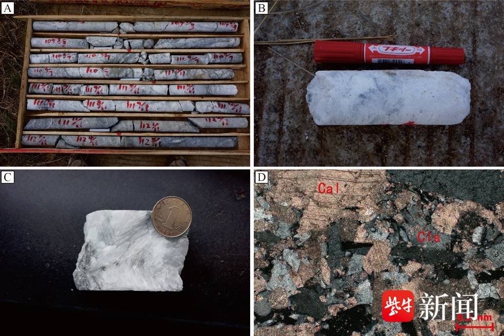 记者从江苏省地质调查研究院获悉,该项目于2025年8月通过了江苏省地质资料馆组织的矿产资源储量评审,提交了锶矿矿石推断资源量545.55千吨,矿物量265.40千吨,SrSO4平均品位48.65%。这也是在江苏省溧水火山岩盆地东北部,围绕着爱景山大型锶矿床,在老矿山周边深覆盖区,继后方村大型锶矿床后又一新的发现,为今后溧水盆地锶矿勘查指明了方向。