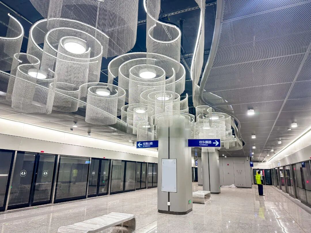 “天花板上的不锈钢金属网帘,采用优质铝合金丝等材料编织而成,具有一定的柔韧性,自然垂落时能呈现出灵动的美感。” 现场工作人员说。