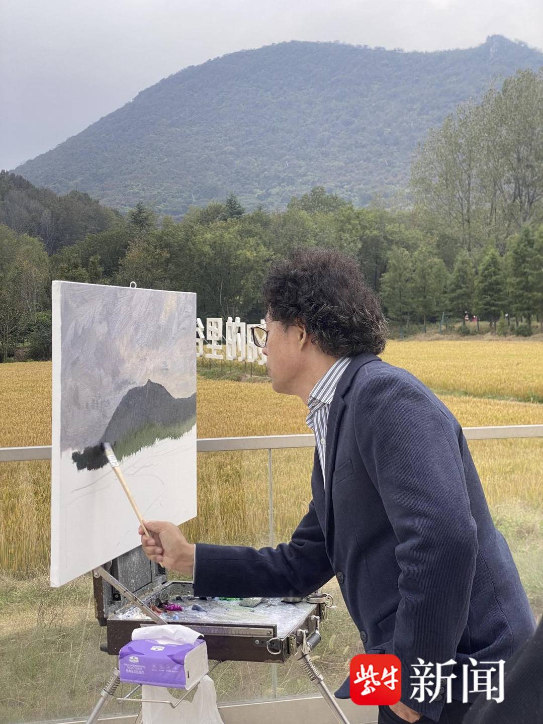 沿山路而上,金色稻田映入眼帘,细雨蒙蒙中,远山附上了一层神秘的面纱,这一场景在陆庆龙的油画上被永恒定格。“每次到浦口来都有新的灵感,乡村建设与艺术空间设计都充满着自然风貌与时代发展的印记。”陆庆龙表示,自己也常带学生来此写生,感受乡村变迁。