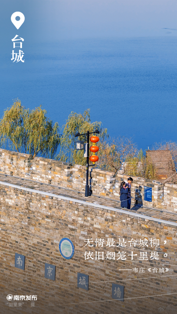 玄武湖边的台城,是明城墙保存最完好的一段,是明城墙的精华部分,也是最广为人知的一条线路,集中体现南京“山水城林”的特色。在台城脚下的湖岸边,还立着一座韦庄的汉白玉雕像,上面就镌刻着《台城》一诗。