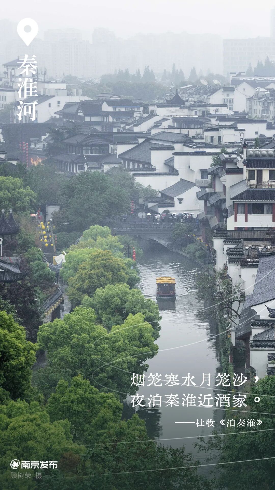 杜牧在这里写下了名作《泊秦淮》:“烟笼寒水月笼沙,夜泊秦淮近酒家。商女不知亡国恨,隔江犹唱后庭花。”随着这首诗脍炙人口,秦淮之名也就不胫而走。