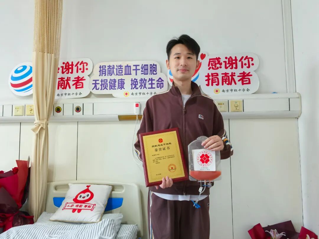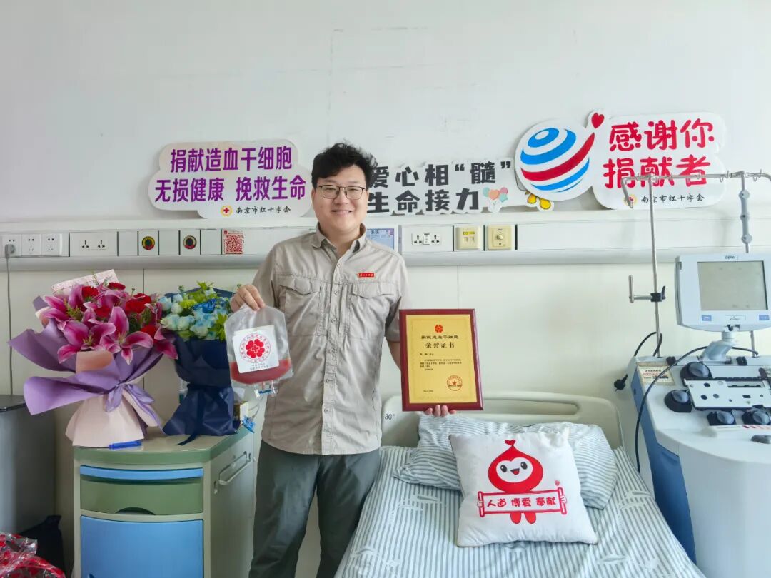10月27日,历经四个多小时,他顺利完成了造血干细胞采集,成为江苏省第1712位、南京市第247位、玄武区第30位造血干细胞捐献者。