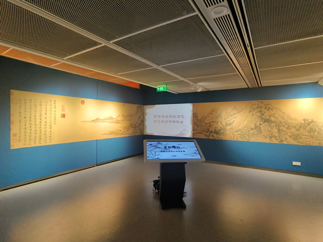 ○ 第三章“守望”厅通过AI共创装置,我们可以在“墨影随行: 富春山居图”上亲手修复传世名画,体验黄公望的创作心境。
