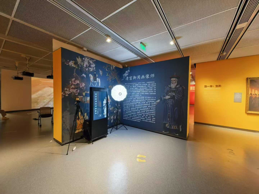 ○ 第一章“变局”厅内的《清宫御用画师画像馆》,以AI技术复现了清代宫廷画师郎世宁的笔触精髓。