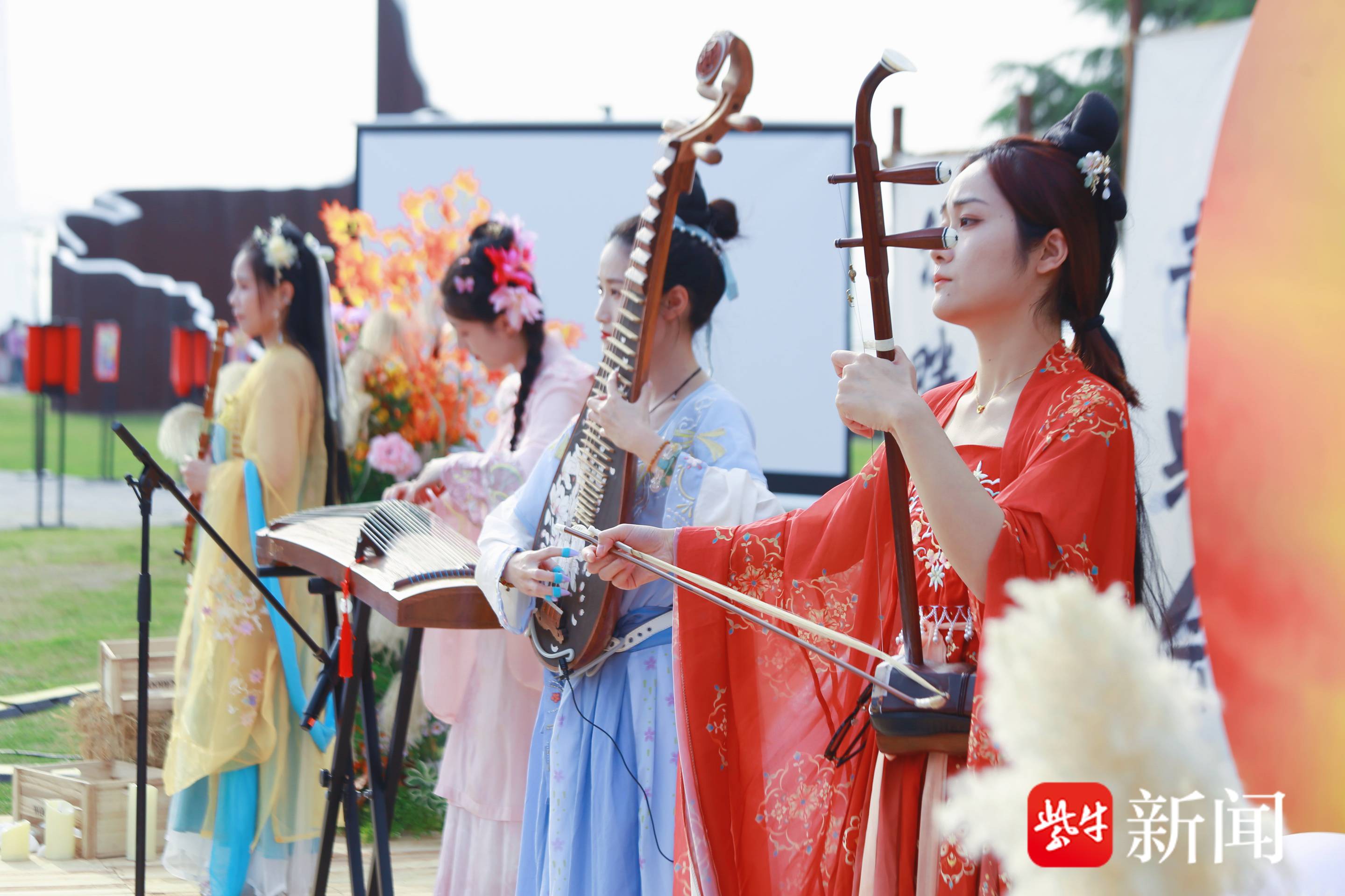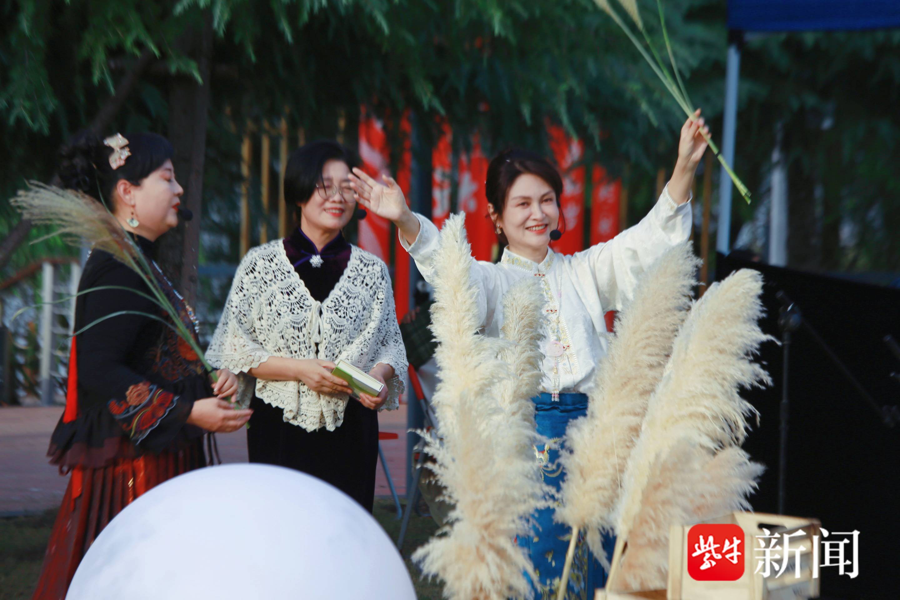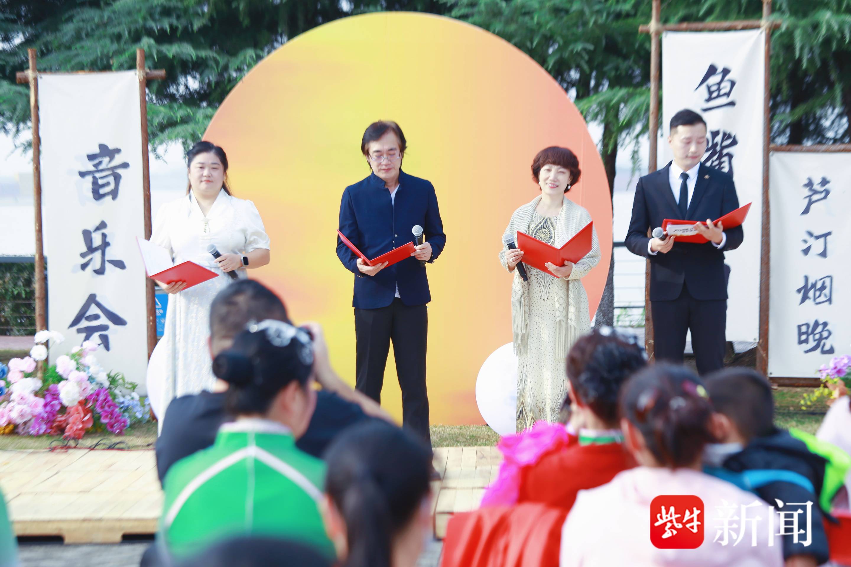 文艺汇演环节亮点纷呈、氛围热烈。双排键独奏《在希望的田野上》以悠扬旋律拉开序幕,勾勒秋日湿地的蓬勃生机;江苏广电主持人天团联袂演绎团体朗诵《读中国》,从《诗经》至元曲,以声音串联千年文脉,引发情感共鸣;国潮器乐串烧《茉莉花》《拔根芦苇花》《护花使者》巧妙融合传统韵律与现代风格,展现芦苇元素的当代生命力;金话筒奖得主姜林杉深情朗诵《芦花荡》,以细腻声线传递芦花的柔韧之美。