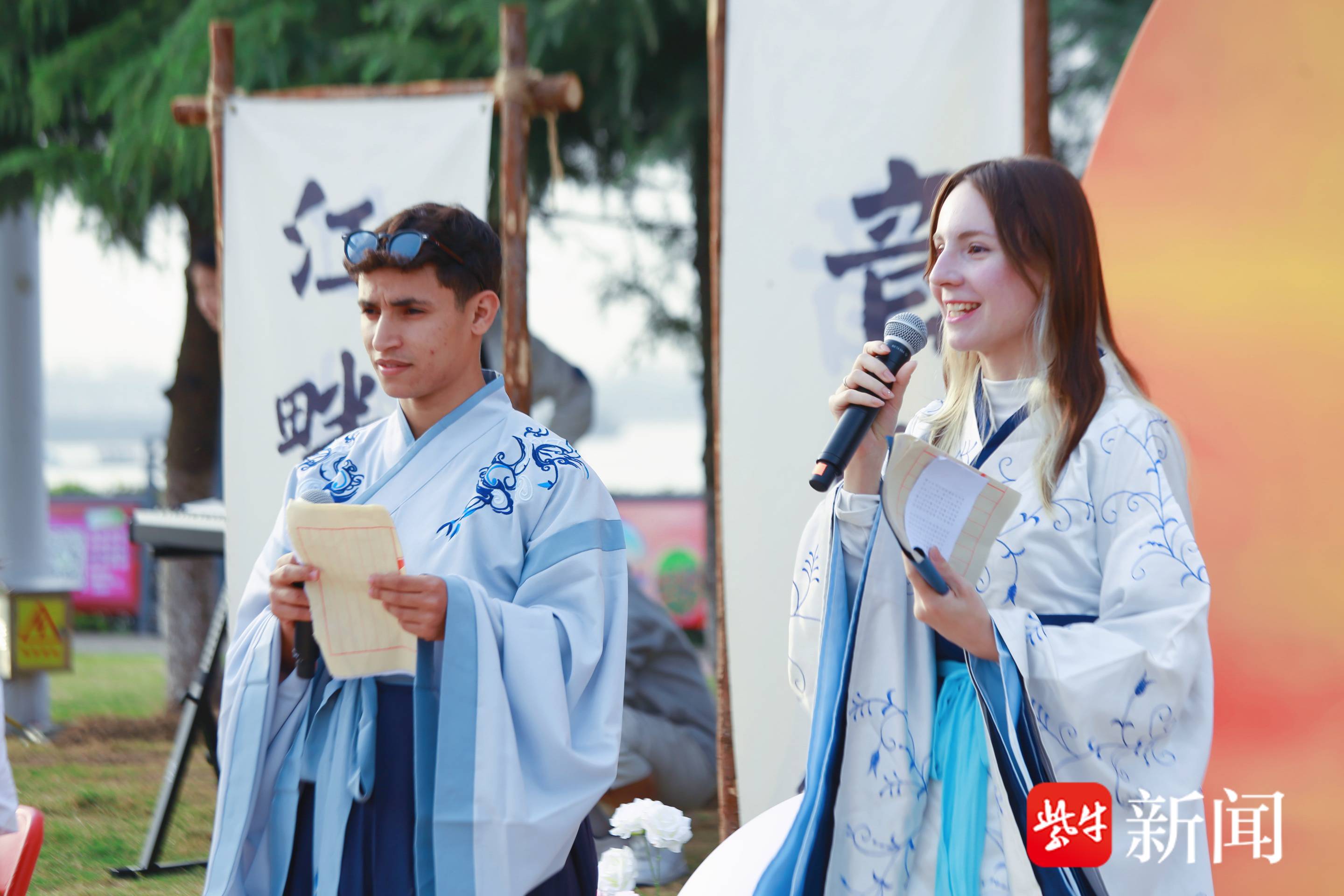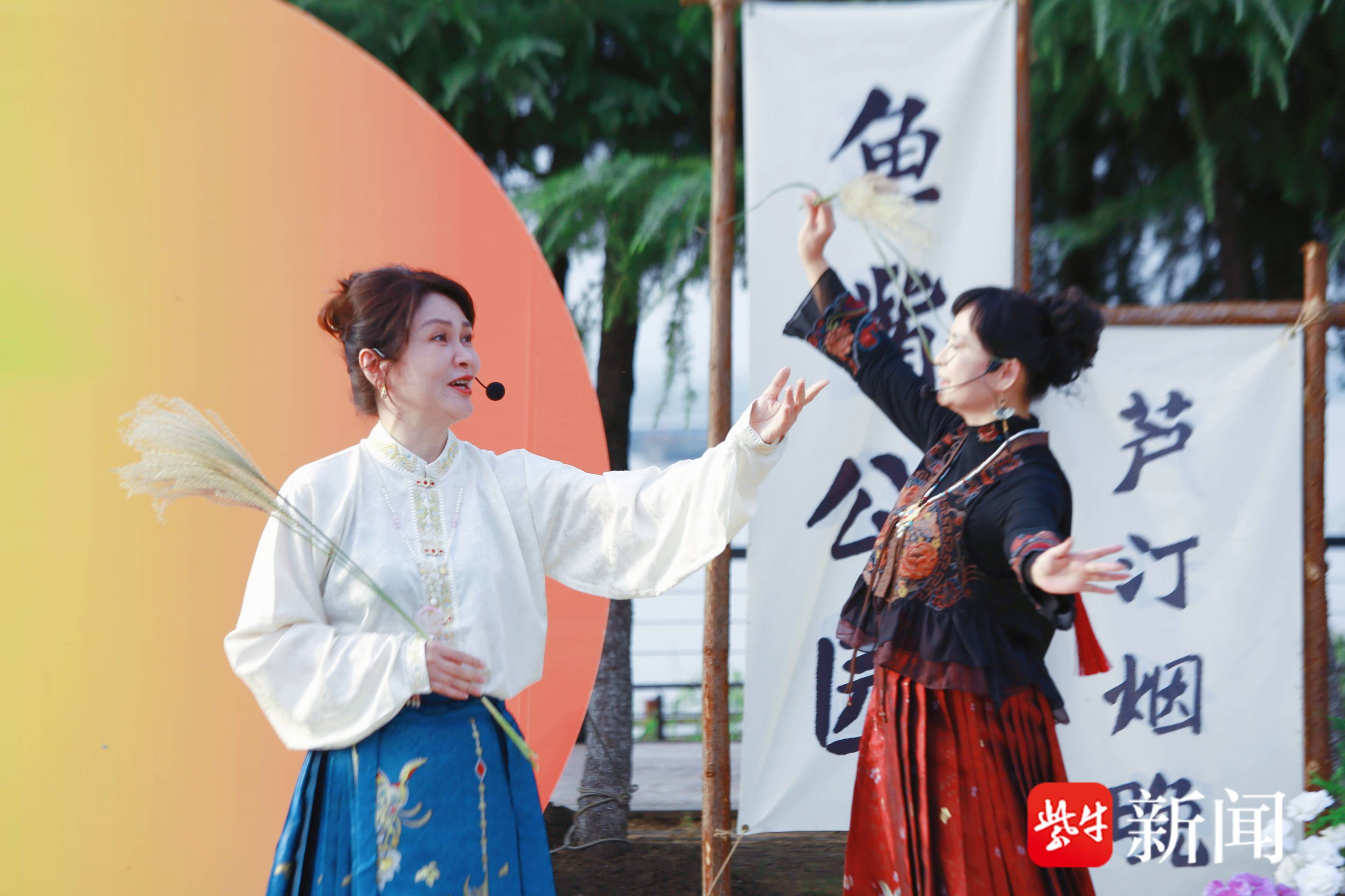 此外,韵尘变脸少年团带来的非遗《川剧变脸》彰显青少年对传统文化的传承活力;歌伴舞《芦花》以动人歌舞具象化呈现芦花的清新灵动;跨界器乐演奏《姜花》以多元音色传递自然植物的治愈力量;国际友人参与的《蒹葭》朗诵与古琴演奏,实现中外文化在古韵中的交融;南京风吟朗诵艺术团的多人诗朗诵《芦花如雪飘古今》,则以现代声音串联古今意境,为演出画上圆满句号。