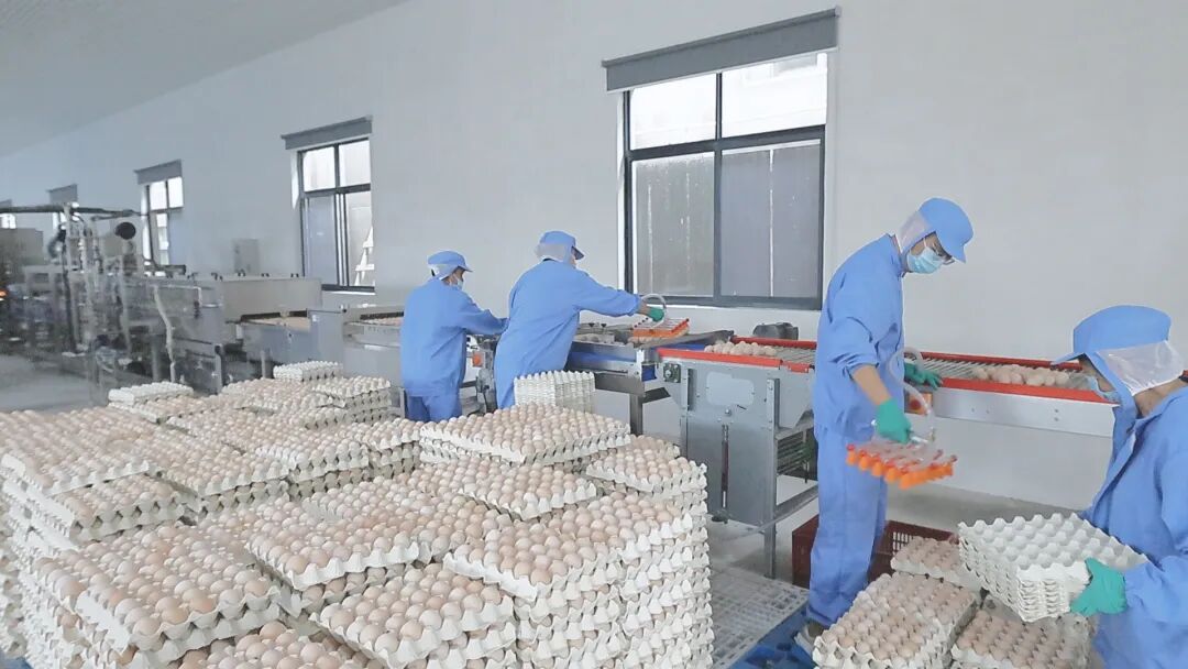 蛋鸡吃“饱”了、吃“好”了,产蛋品质自然就高了。在鸡蛋分拣车间,王祥雷随手拿起一枚全自动输送带上的鸡蛋展示,“现在我们的鸡蛋蛋壳坚韧,破损率可控制在0.2‰以内,同时,单枚鸡蛋平均重量也大幅提升,普通鸡蛋单颗约重55克,我们的鸡蛋单颗可达60克以上。”