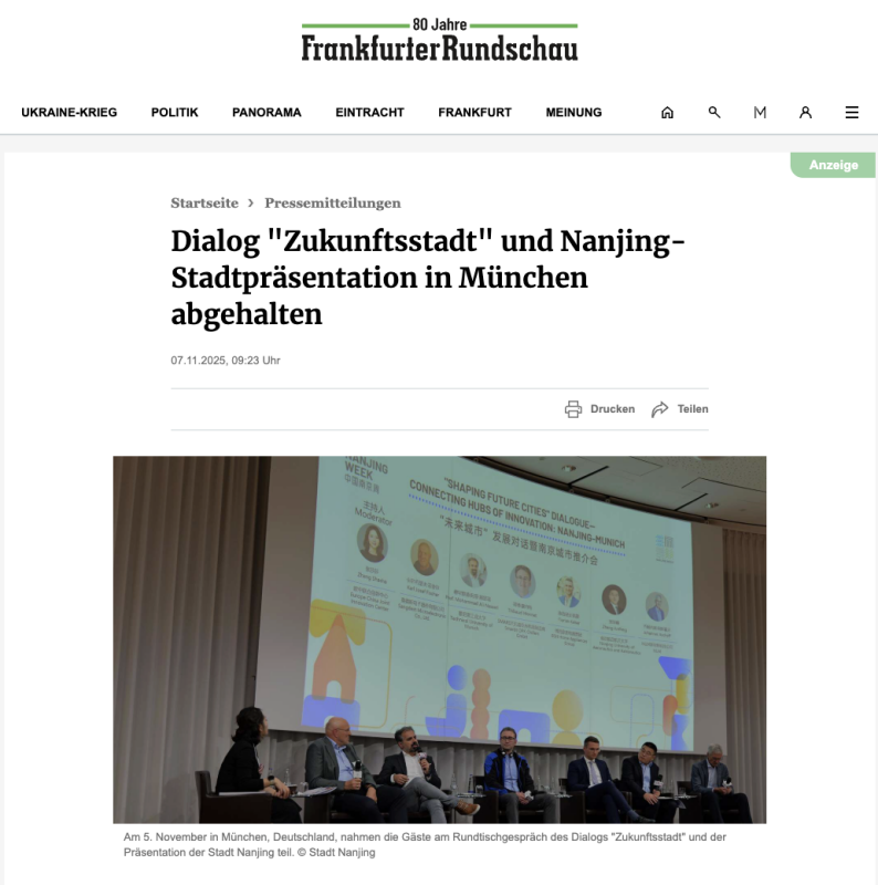 《法兰克福观察者报》则在报道中引述了与会嘉宾的观点,展现了德国各界对合作前景的看好:“南京等中国城市与德国城市建立了友好城市关系,并与德国企业共同开设职业培训等项目,这有助于两国社会加深友谊与互信。”