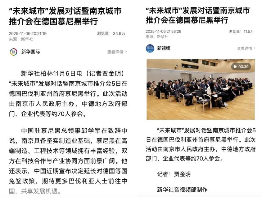 德新社在报道中强调,“慕尼黑对华商业往来密切,许多德企将南京作为进入中国市场的首站,也有不少中国企业选择在慕尼黑设立分支机构,期待本次活动进一步促进沟通与交往。”