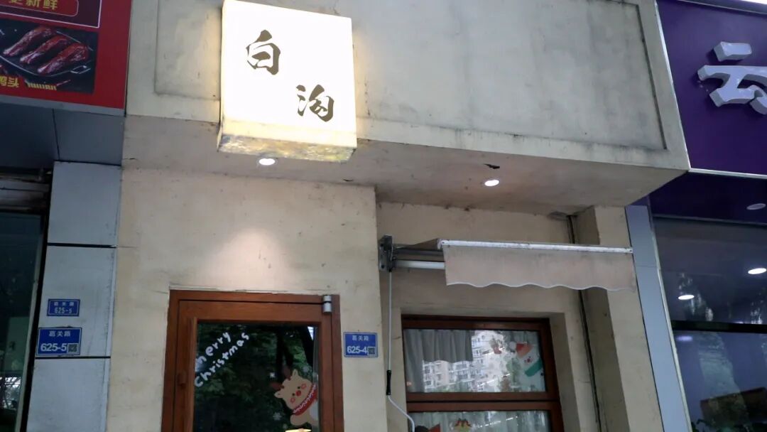 ○ 走进“白沟”,素雅的门头下是一面玻璃窗,向内望去,可以看到吧台内琳琅满目的酒品。与周围一排上了年纪的店铺形成对比,酒馆成为这条年代悠久的梧桐大道新的风景。