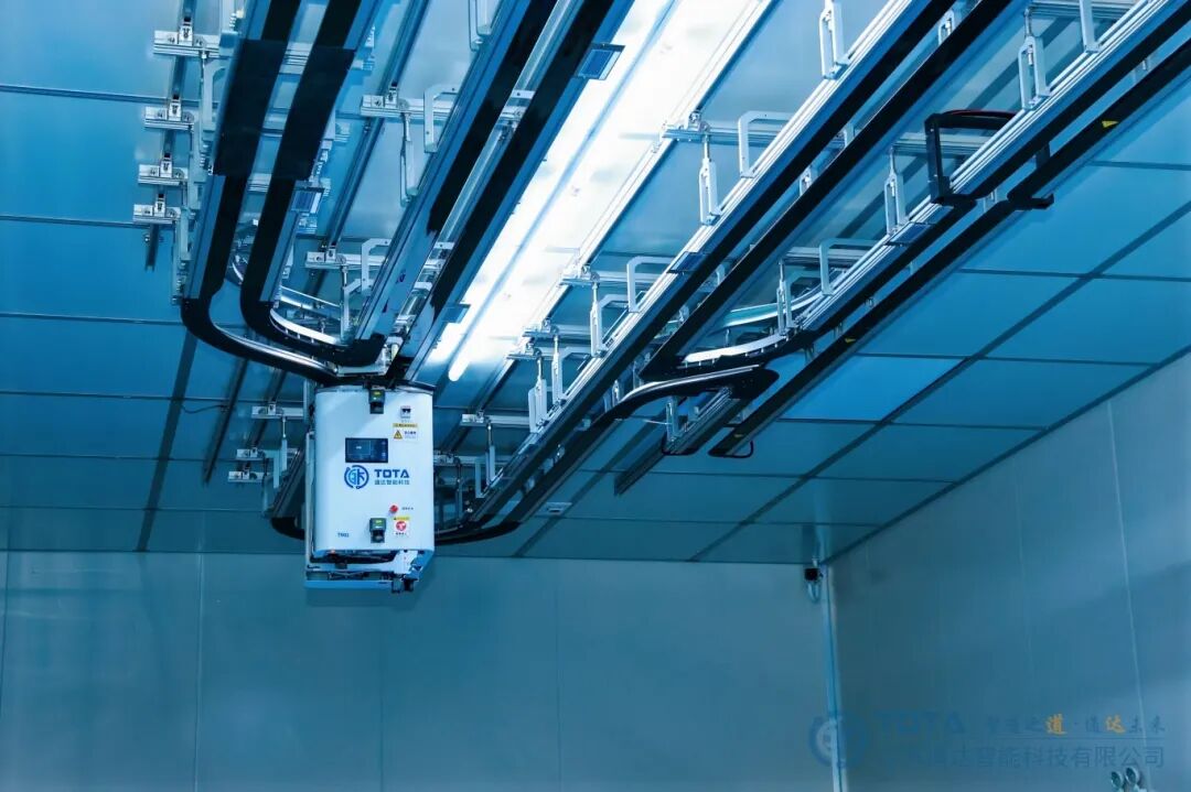 ○ 因为它确实过于先进了。AMHS系统,又称天车系统,随着晶圆厂产能规模扩大、工艺流程复杂化以及对洁净度的极致要求,不占地面空间、在车间上空轨道上运行的天车方案逐渐成为行业标配,用以满足高产能、高稳定、高洁净室的需求。