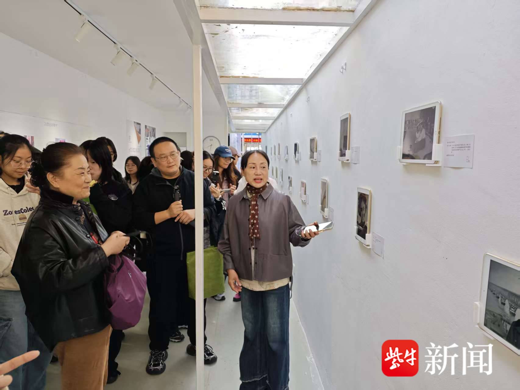 “你看这张照片!那时候我才20出头,一晃都几十年过去了。” 居民钱女士拉着老邻居,在自己摄于1979年的单人照前驻足,两人你一言我一语,回忆起年轻的过往。还有不少居民拿出手机,拍下动态影像分享给家人。居民房女士笑着说,“以前看老照片是‘看故事’,今天是‘走进’故事’里,不一样的感觉。”