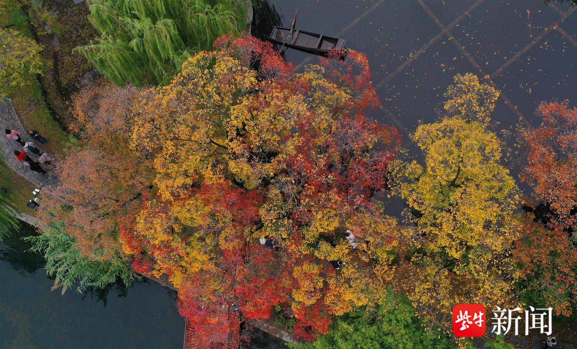 视频|南京莫愁湖公园里,深秋里的乌桕树叶美如彩画