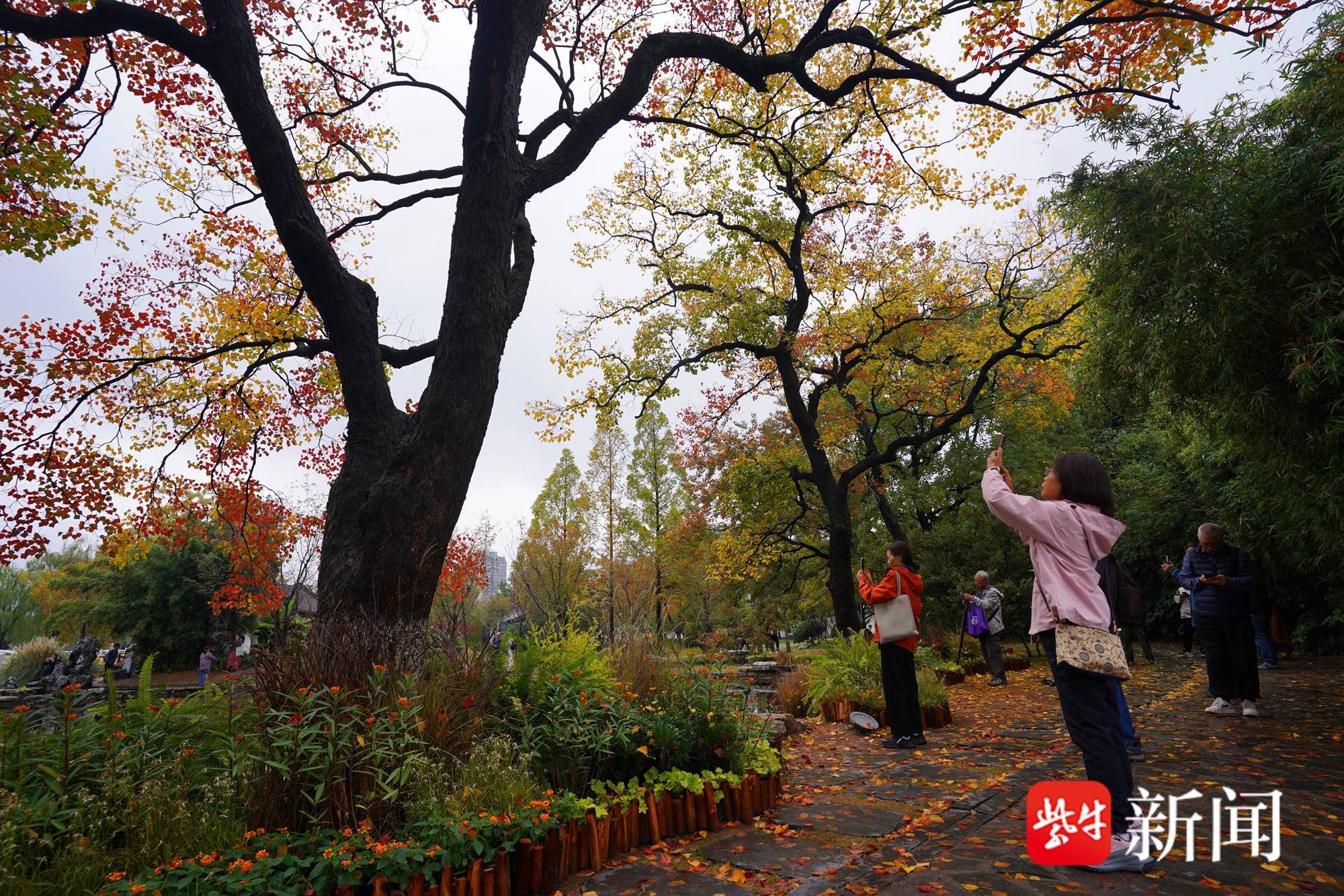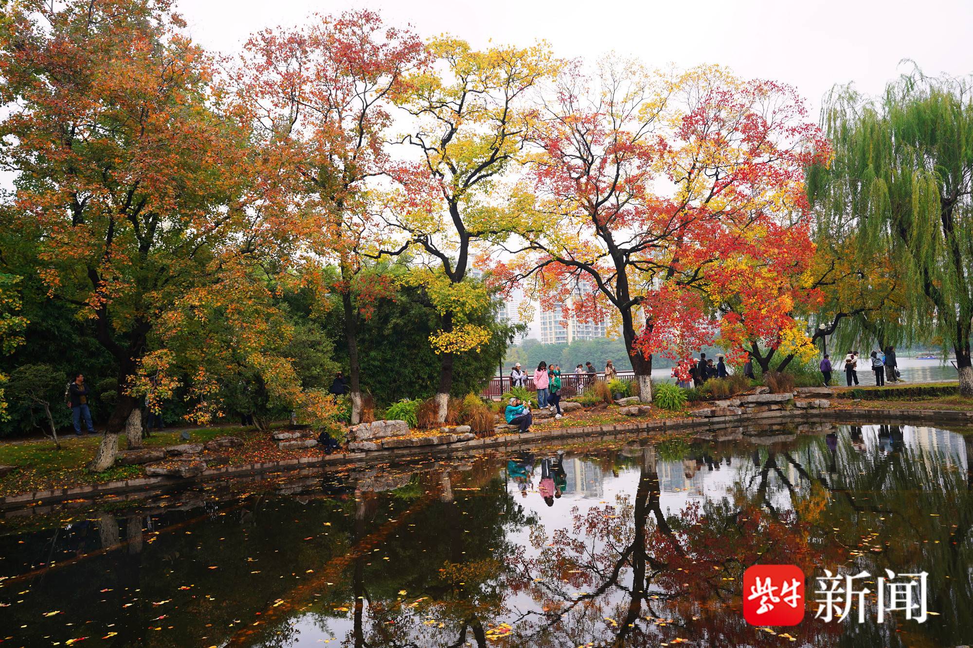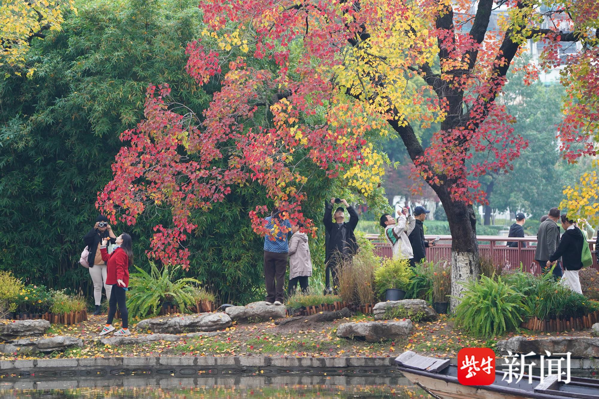 秋后的南京莫愁湖公园里,迎来如织的游人。当游人驻足景区的乌桕树前,满树的黄红色叶片簇拥在一起,纯粹、明媚、洒脱,美不胜收,忍不住前往这块自然“调色板”前,拍照打卡。