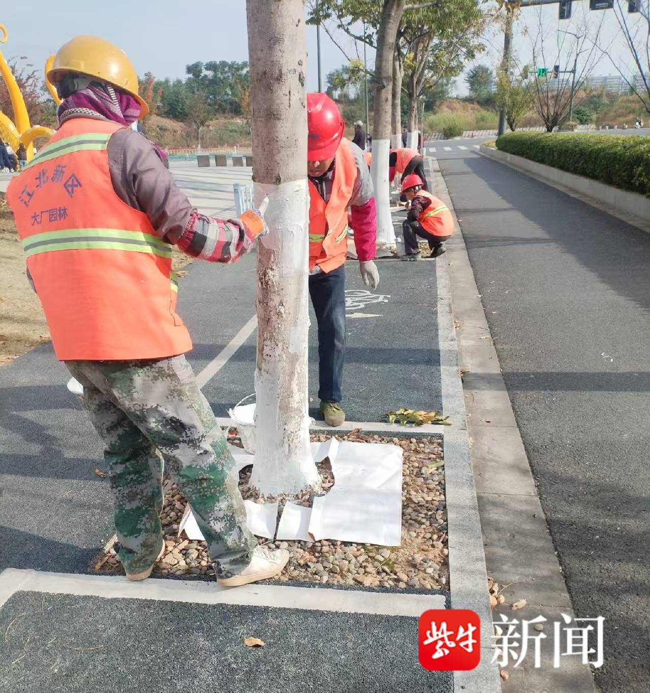 扬子晚报网11月2日讯(通讯员 周巧林 记者 张可)立冬已至,气温持续走低,为切实提升树木抗寒防虫能力,南京大厂园林公司提前谋划、科学部署,全面启动秋冬季苗木刷白“穿冬衣”专项行动,以精细化养护守护城市绿荫,为苗木安全越冬保驾护航。