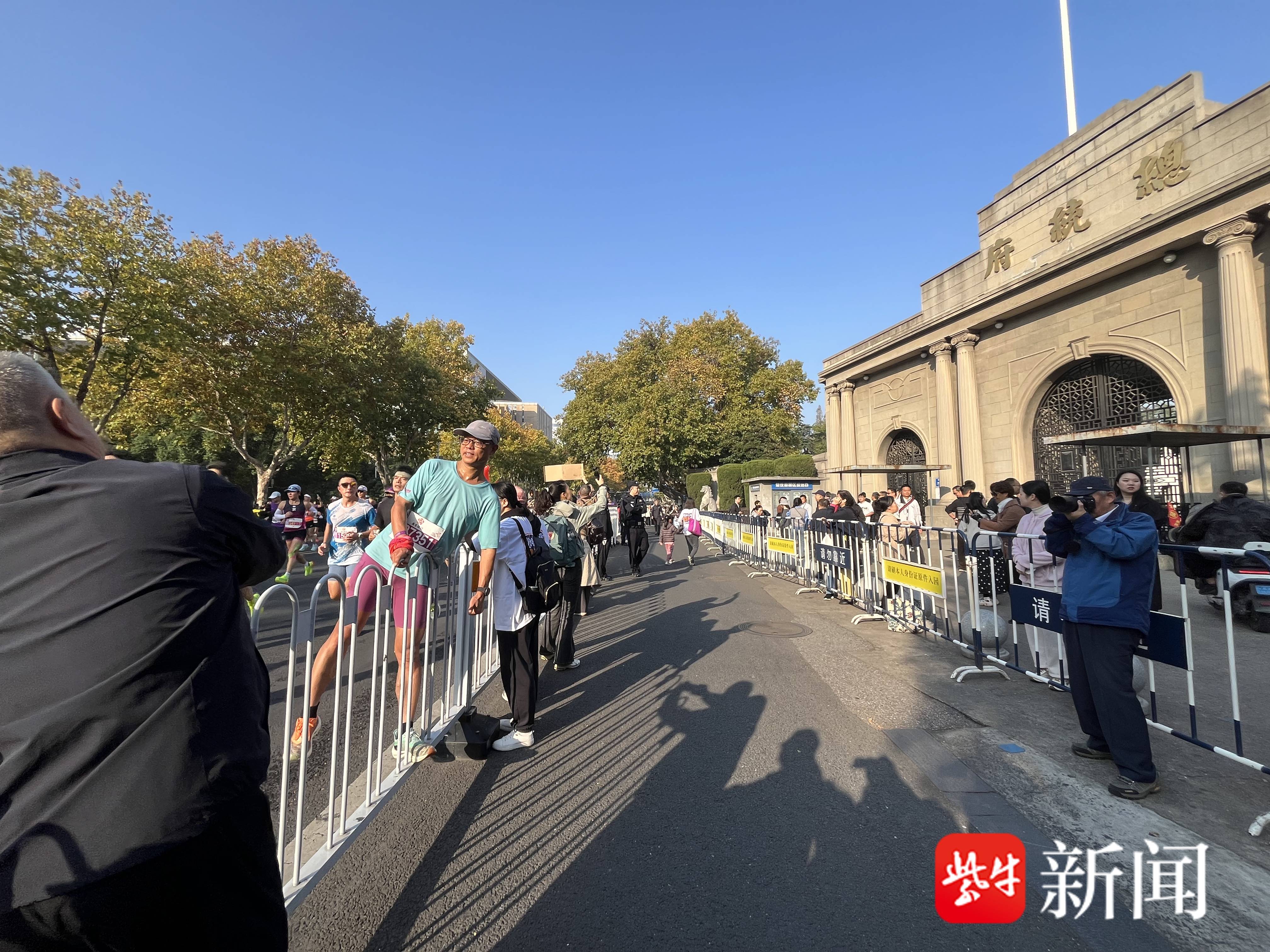 记者发现,跑过这里的选手,其中有部分会放慢脚步,边跑边看一眼雄伟的总统府建筑,而有一部分则直接跑到赛道边离总统府最近的位置拍照留念,更有甚者,还让路边的市民帮他来一张角度更好的打卡照,留下南马之行在总统府前自己的影像资料。