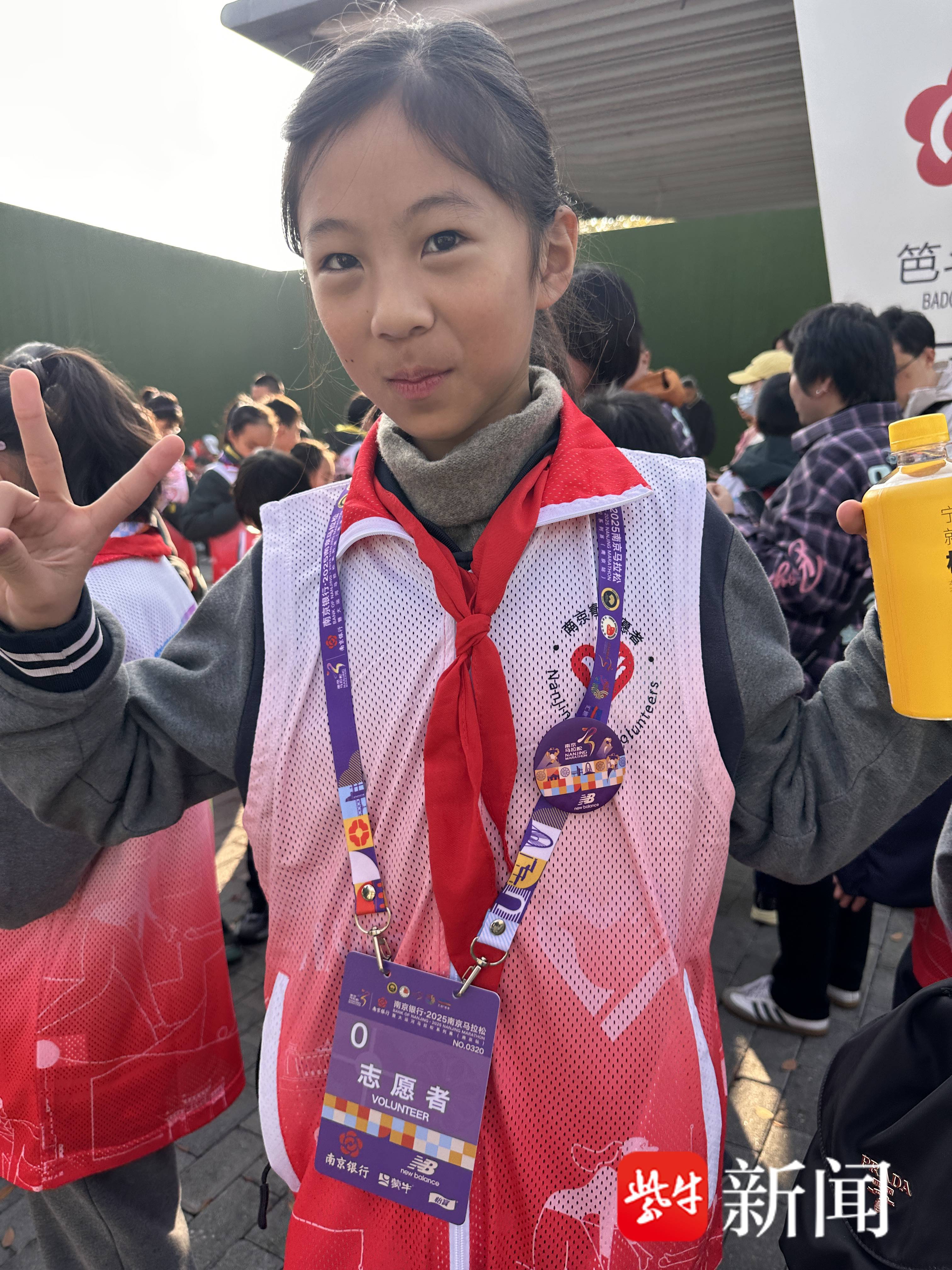 朱若水原本想报名南马迷你跑的,可惜今年该项目取消了,正在遗憾时,所在学校青奥村外国语小学发布了志愿者招募通知,于是她很快报名并被选中。