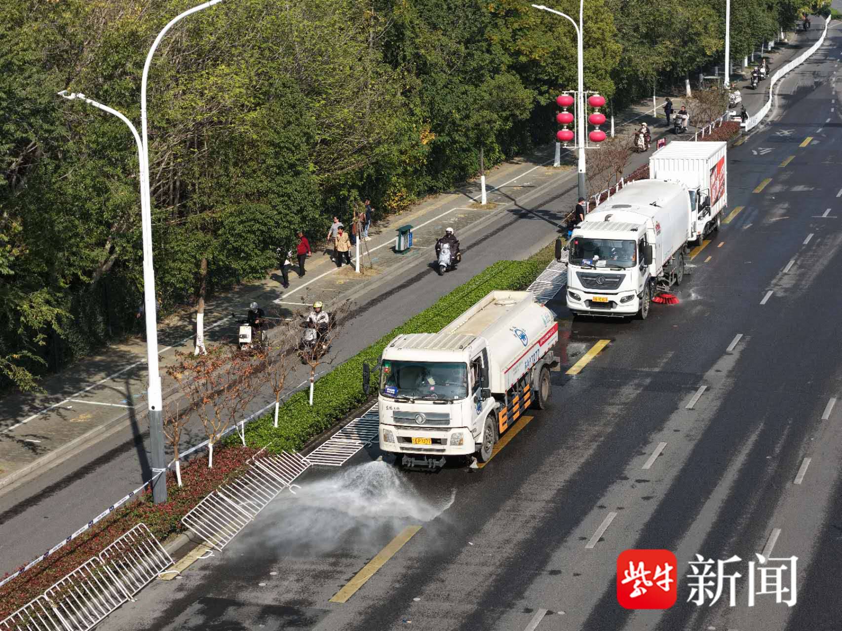 据悉,南京市城管局组织各环卫作业单位对比赛沿线路段进行全方位排查整治,彻底清洗路面、清除卫生死角。全市环卫组织了6支队伍2000余名保洁人员,重点在星期六赛前、星期天上午四点、赛后三个节点组织彻底清洗路面、落实保洁。