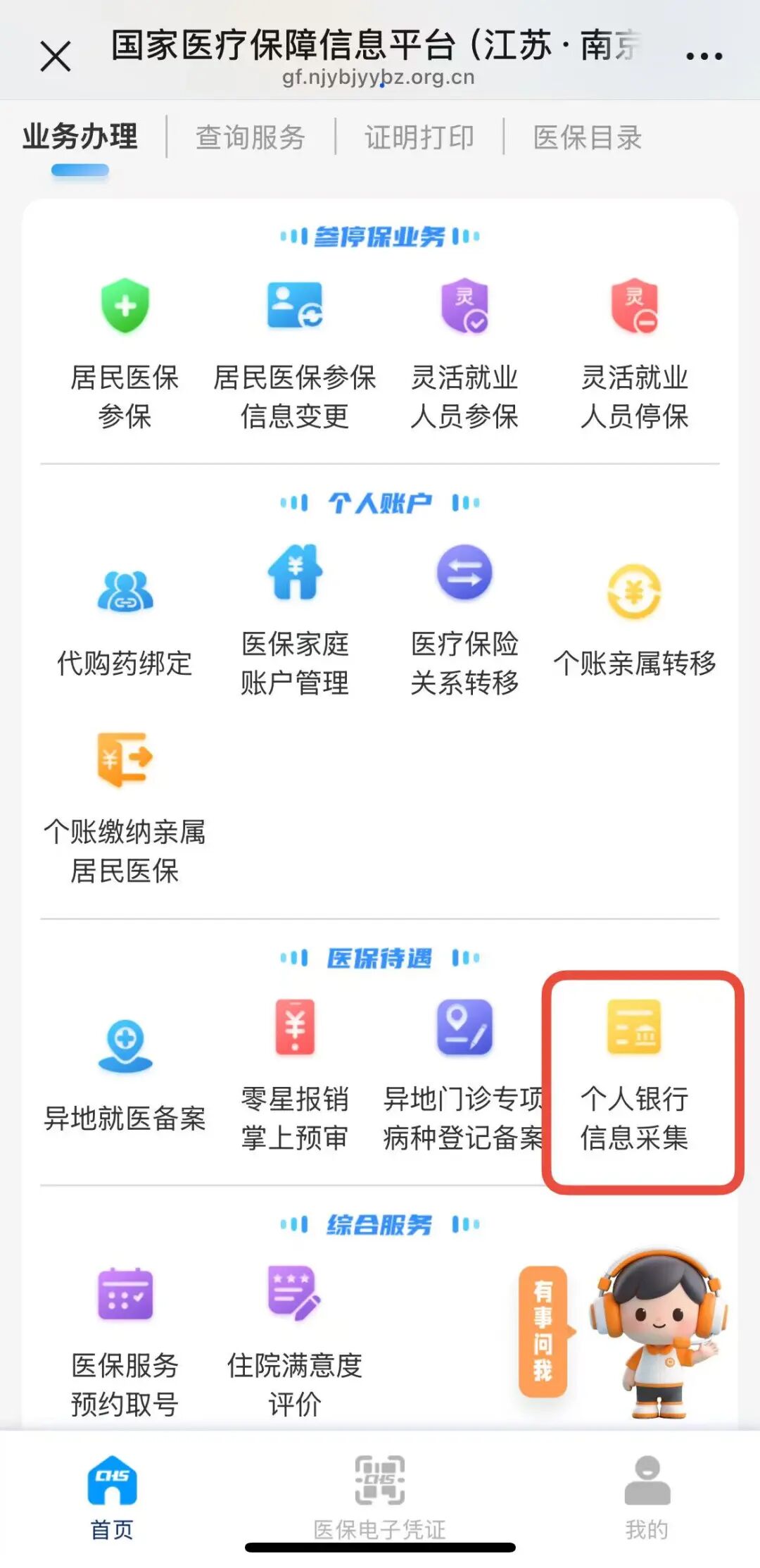 “南京医保”微信公众号“服务大厅—个人银行信息采集”或“我的南京”APP“医保服务—个人银行信息采集”