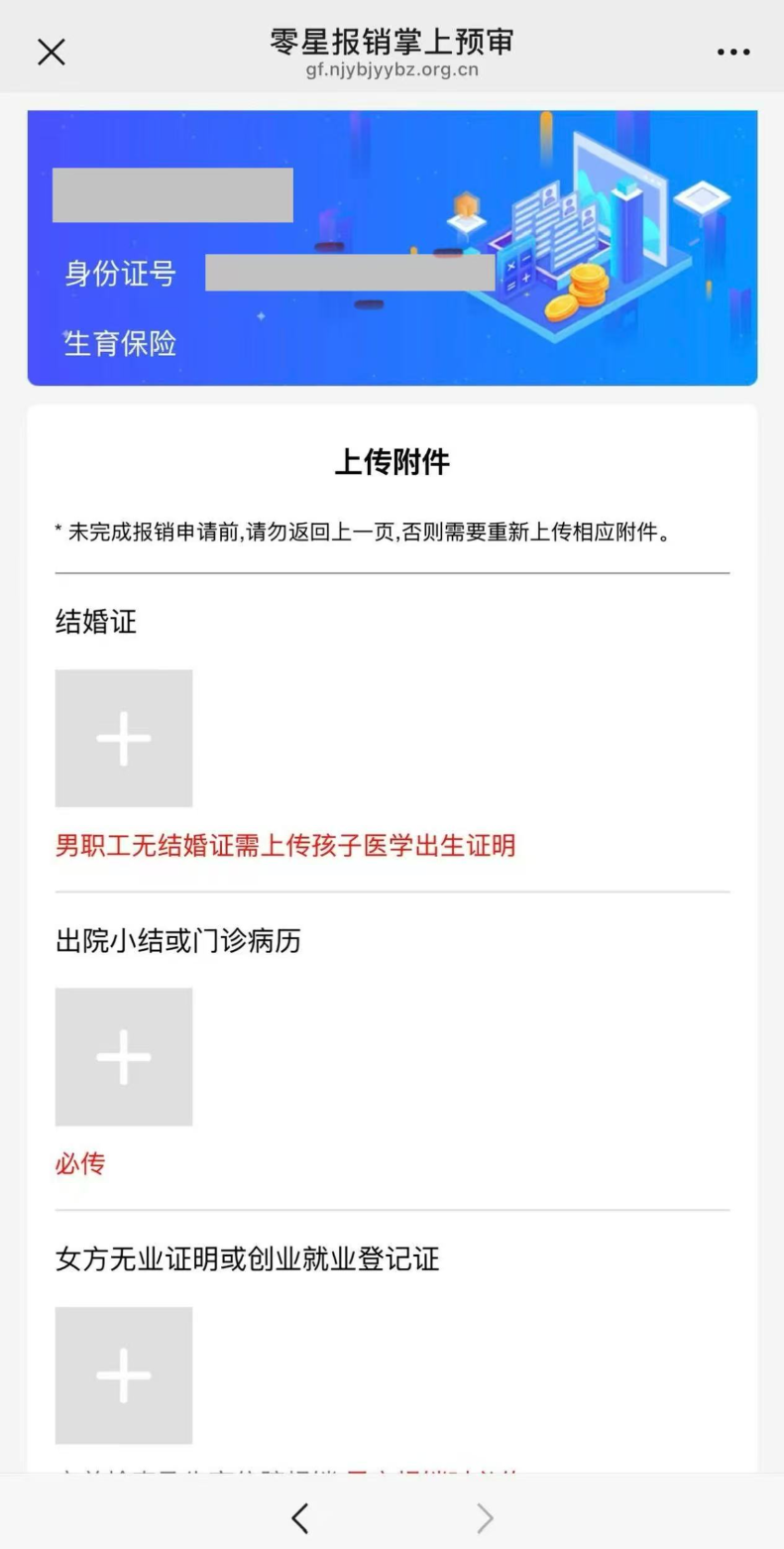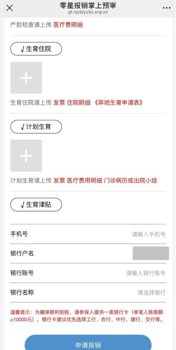 “南京医保”微信公众号“服务大厅—零星报销掌上预审—生育保险”或“我的南京”APP“医保服务—零星报销掌上预审—生育保险”