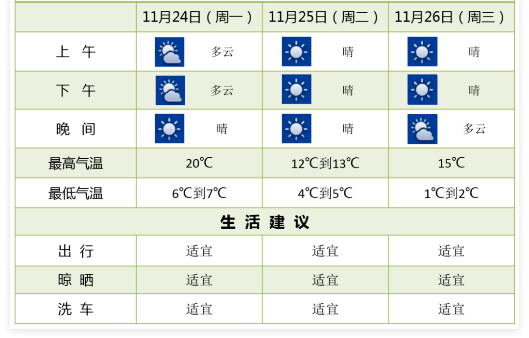 非常适宜出行、洗车和晾晒