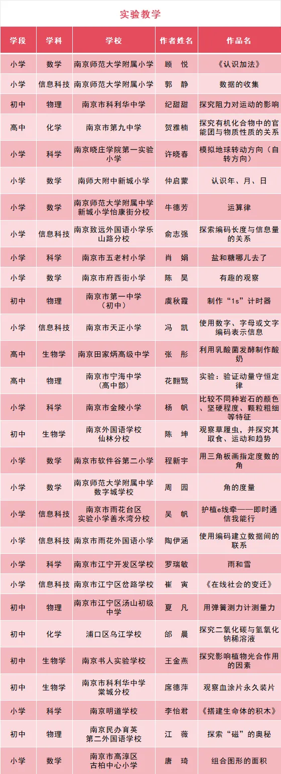 在新课标引领下,南京市率先在实验教学领域做出探索,目前已经完成小学实验教学三个学科的资源全覆盖,同步培育了一支善研善教的实验教学骨干队伍。基于这些扎实的工作积累,今年南京在该赛项上的获奖数量实现翻番,进步显著。