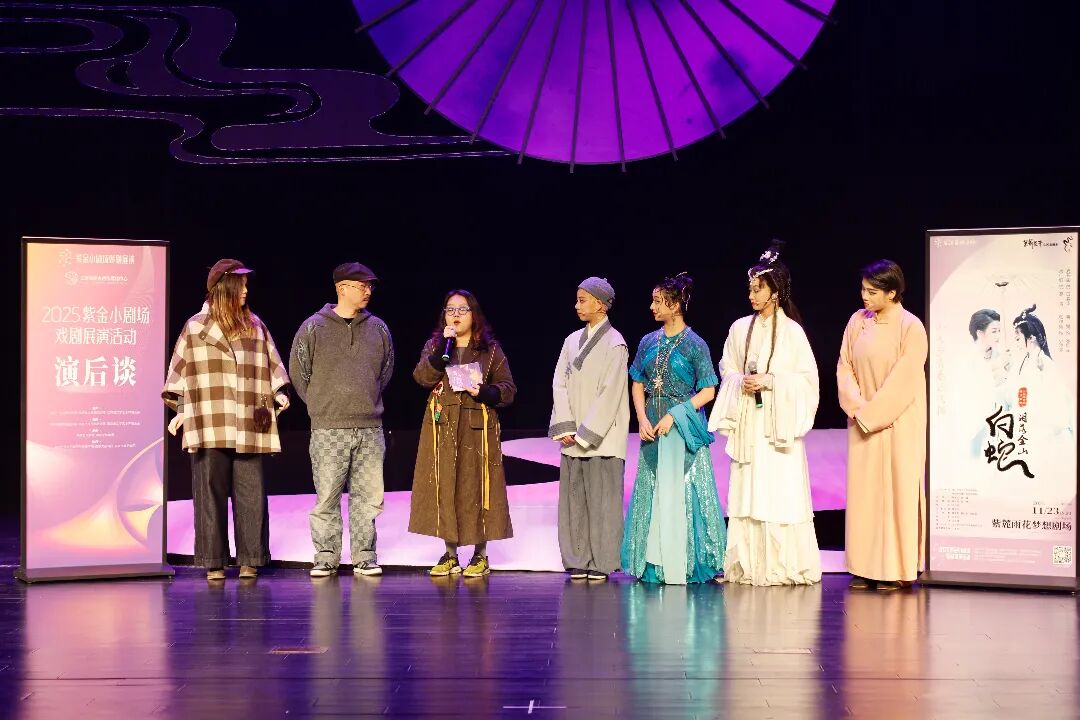 在这些观众中,有一个特殊的群体——0元观演团,通过线上报名,部分观众得以免费观看演出。有观众在演出结束后,通过2025紫金小剧场戏剧展演剧评平台写下观剧体验:“《白蛇·泪落金山》让我看到了传统戏曲的现代魅力,年轻演员的表演充满活力,让人耳目一新。”