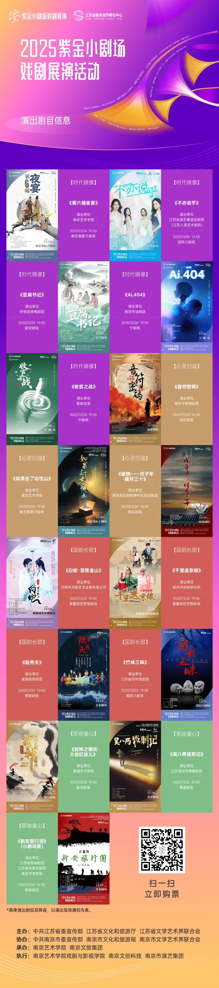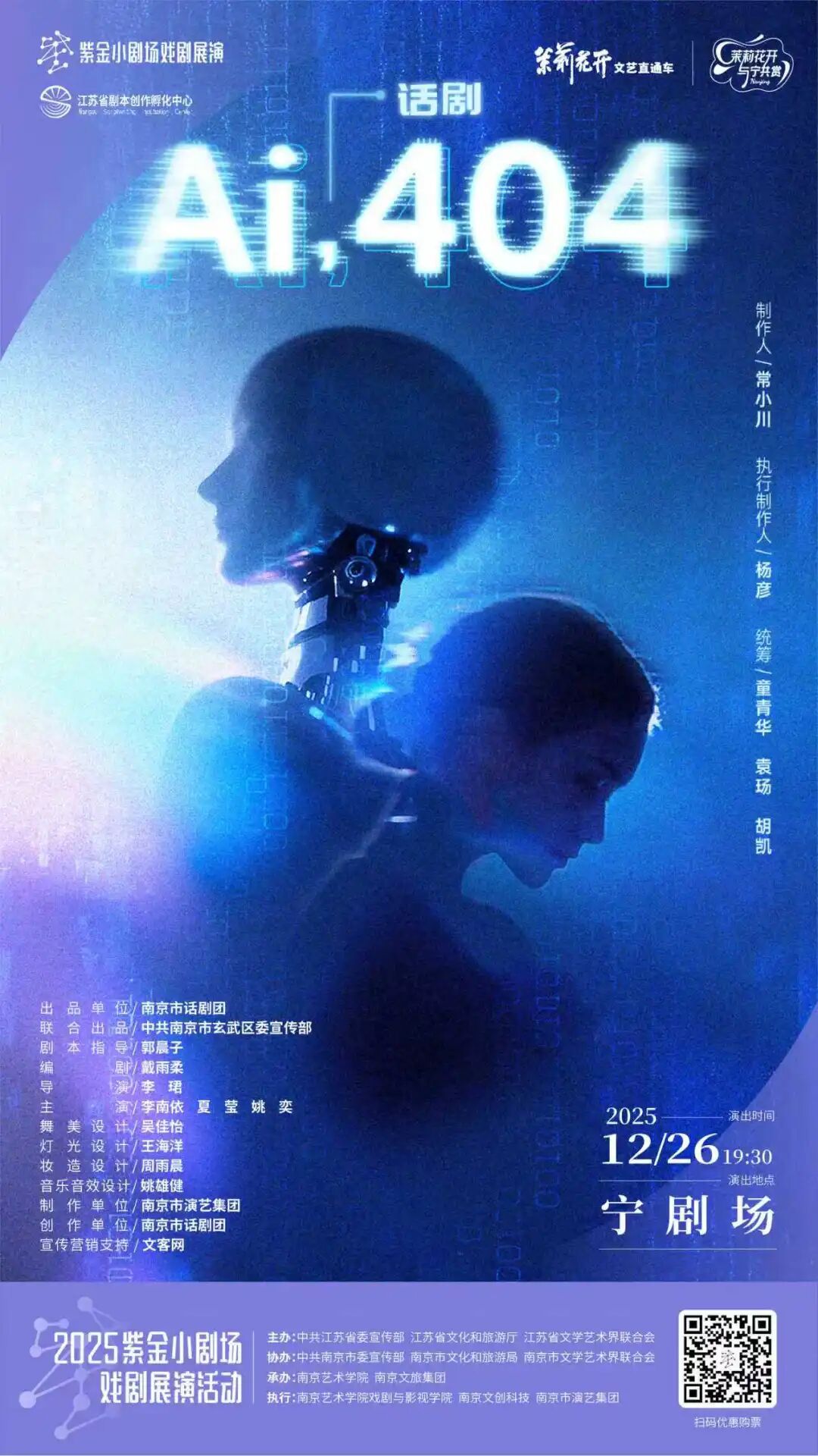 有探讨AI机器人与人类情感的《Ai,404》,有穿越古今叩问何为初心的《第六幅夜宴》,有关注老年人精神世界的《收官之战》,有带你重回热血革命战争年代的《音符密码》,有童趣诙谐的《吴八两拔刺记》……这些展演剧目在表现风格上结合了传统戏剧表达和实验剧场创作,通过江苏舞台编、导、演融会贯通的创作体验,将为观众带来全新的观演感受。