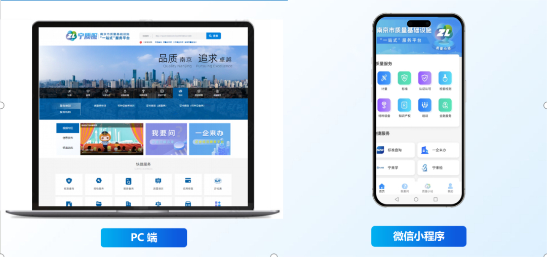 便捷访问指南:新域名一键直达平台已启用官方域名,原试运行访问地址停止使用,南京企业和用户可通过以下两种方式快速登录:网页端访问直接输入官方域名https://amrzx.nanjing.gov.cn:8088/nzf/,即可进入平台首页;小程序访问微信搜索“宁质服”小程序,通过底部“首页”检索所需服务、“我要问”发起在线咨询、“质量小站”查找所在区的线下网点,随时随地享受便捷服务。
