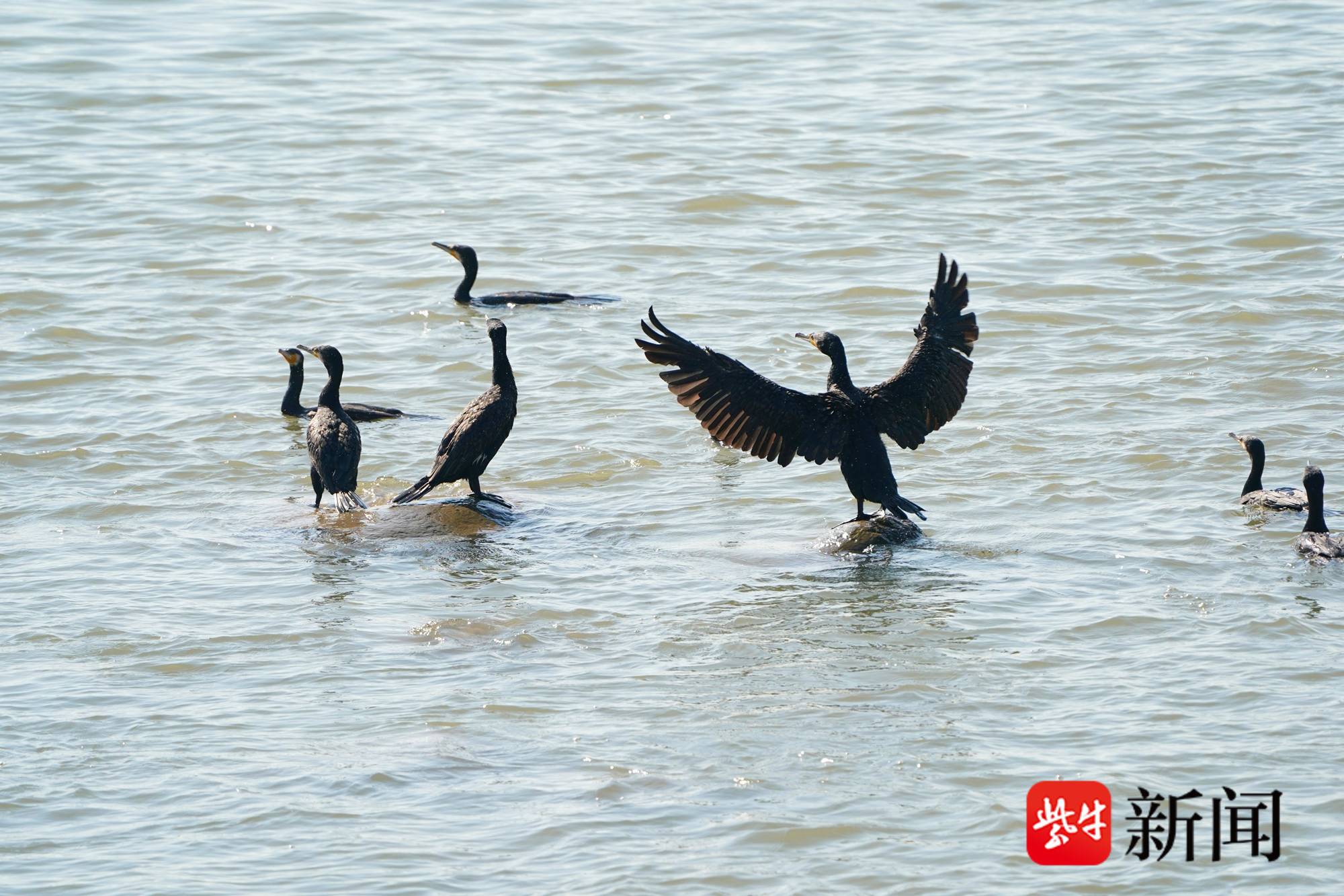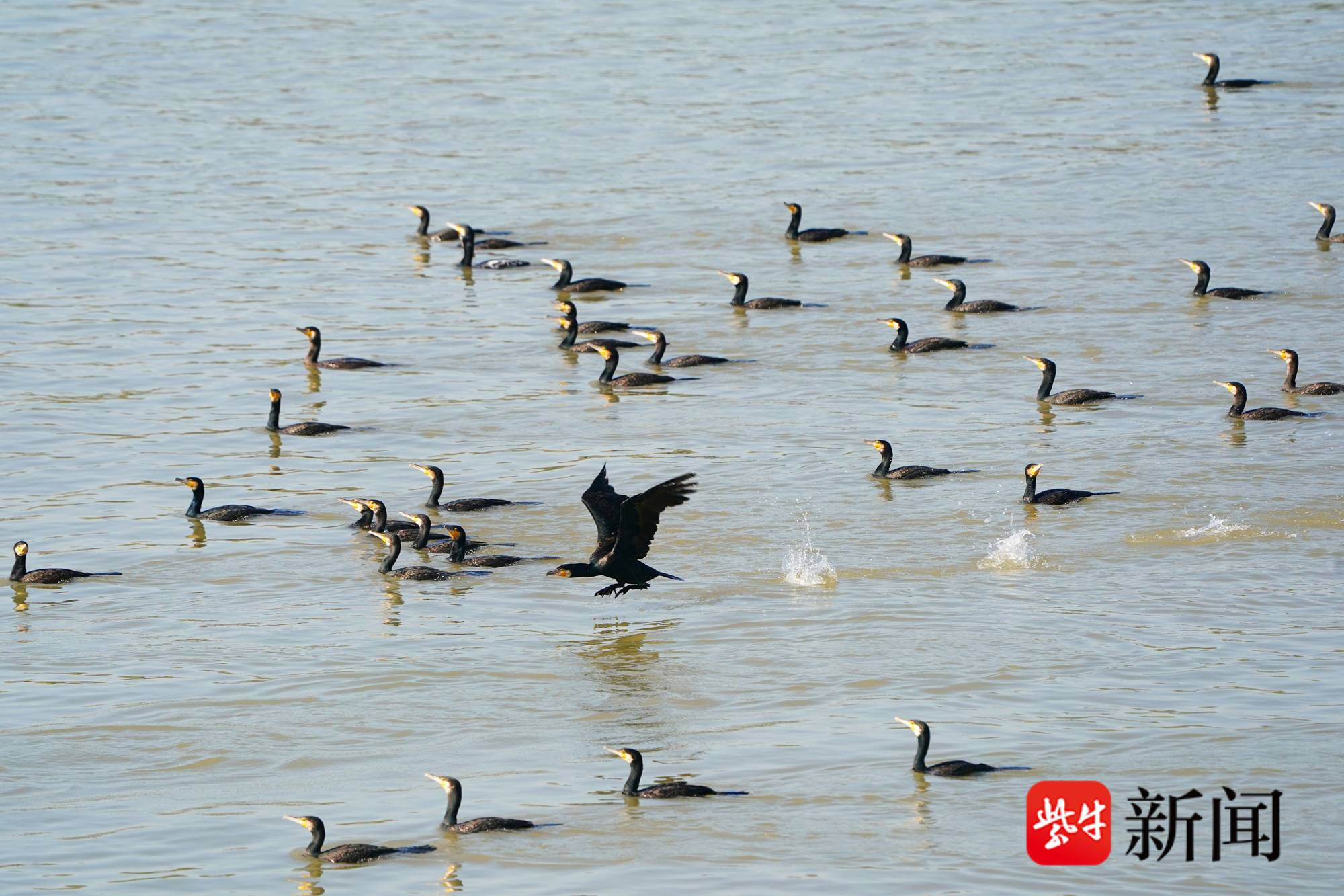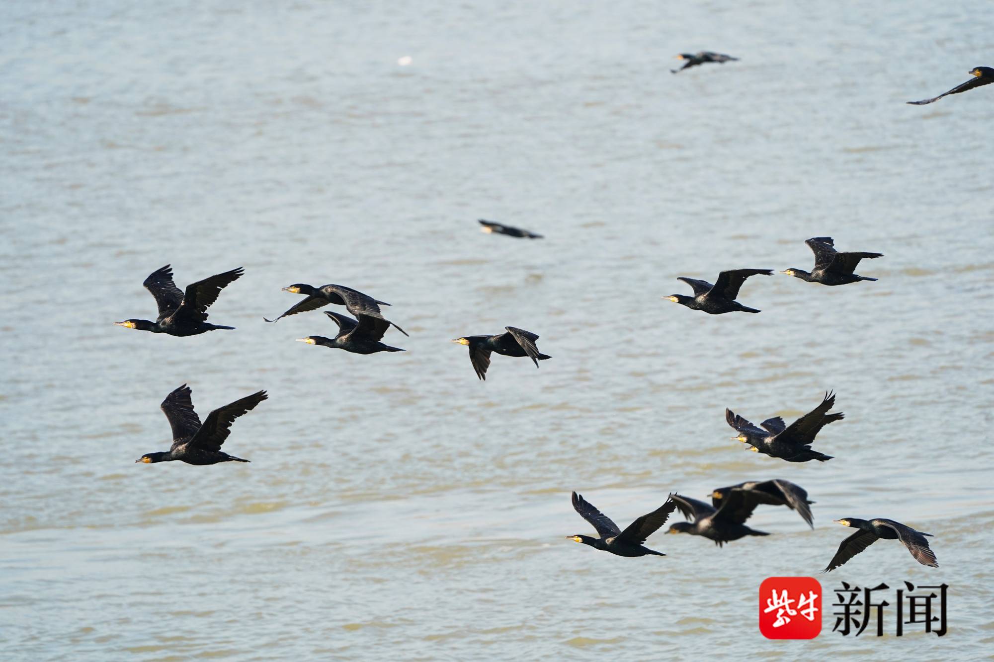 视频|南京建邺夹江两岸边,成了上百只鸬鹚的“免费餐厅”