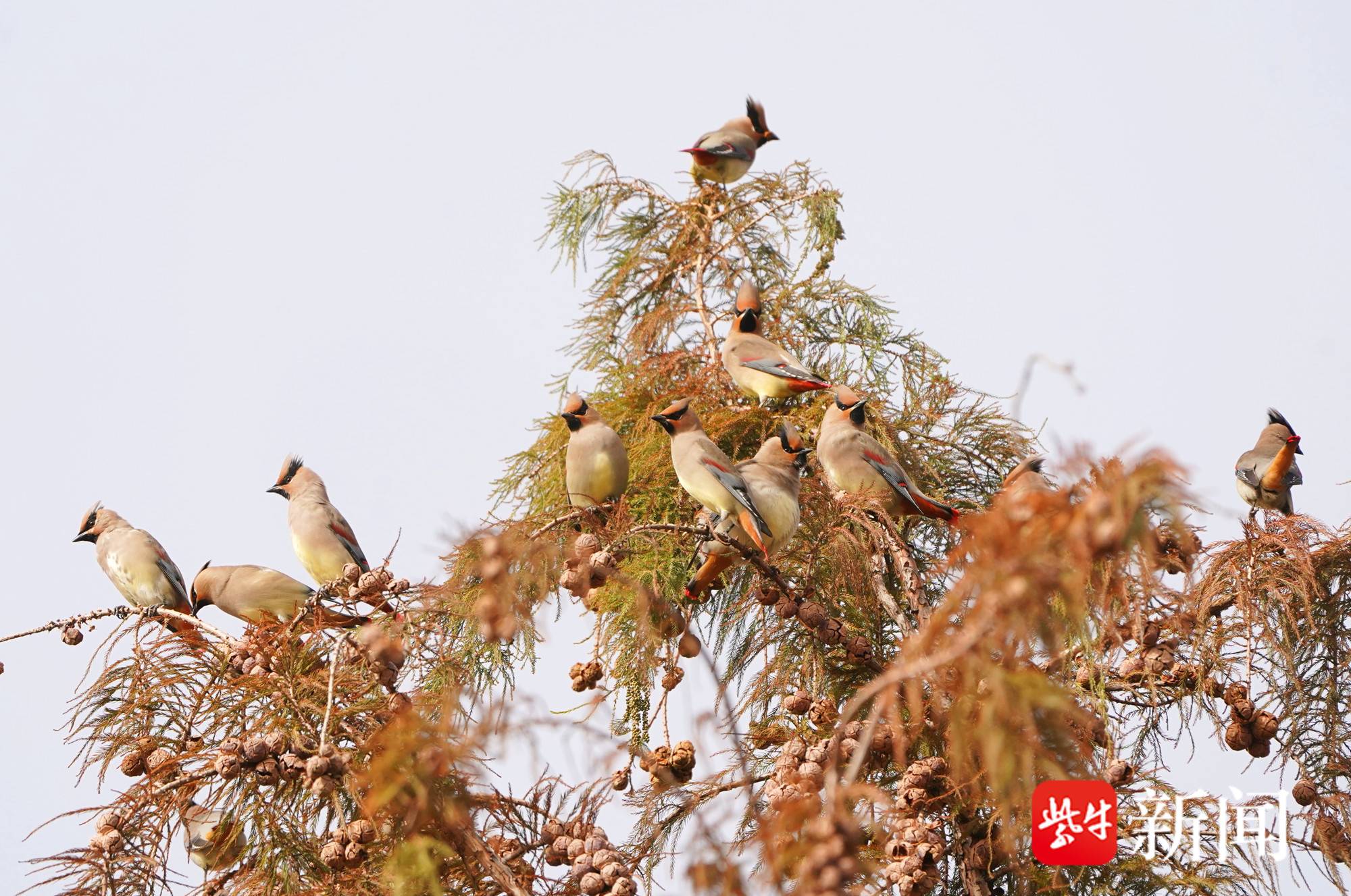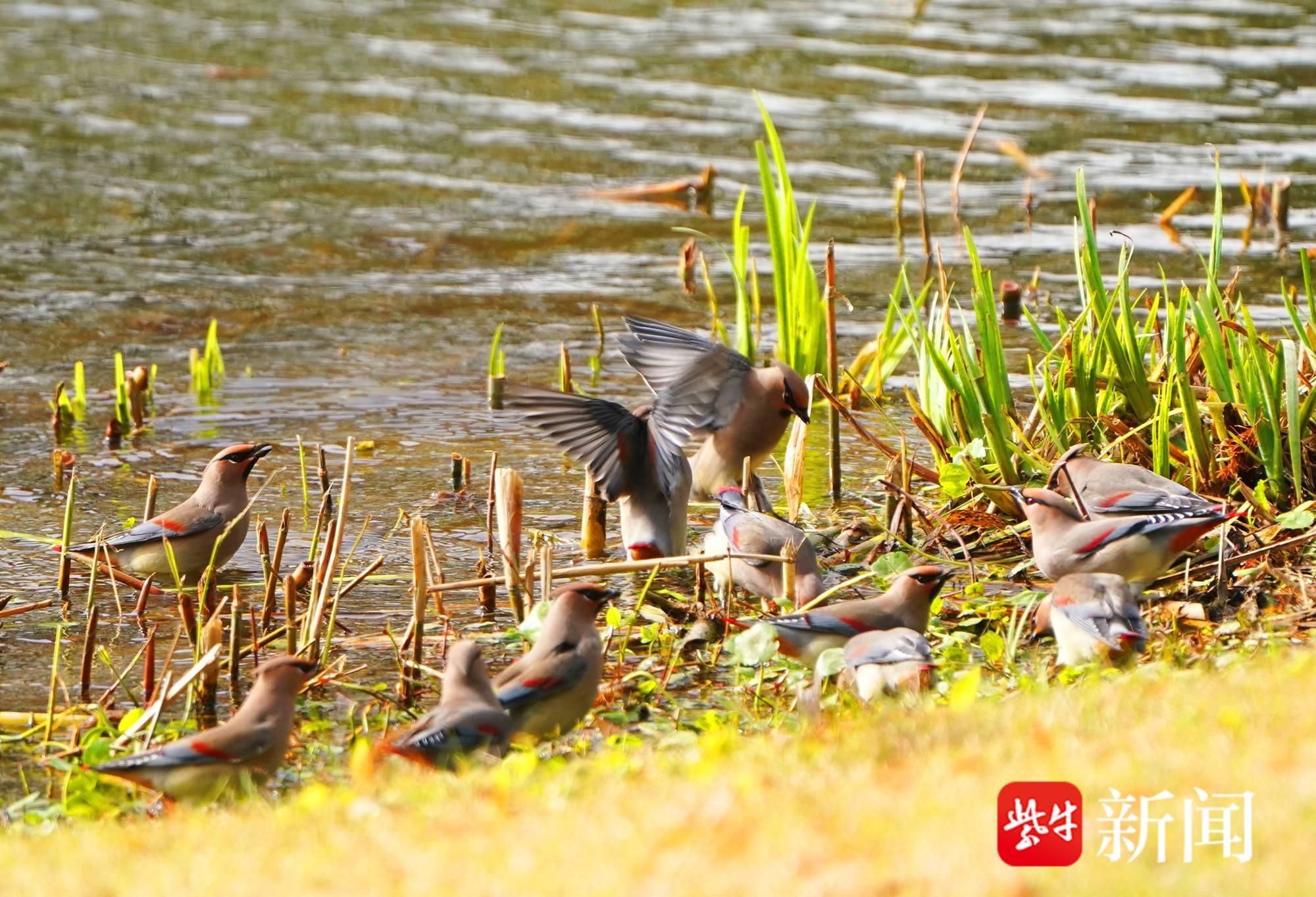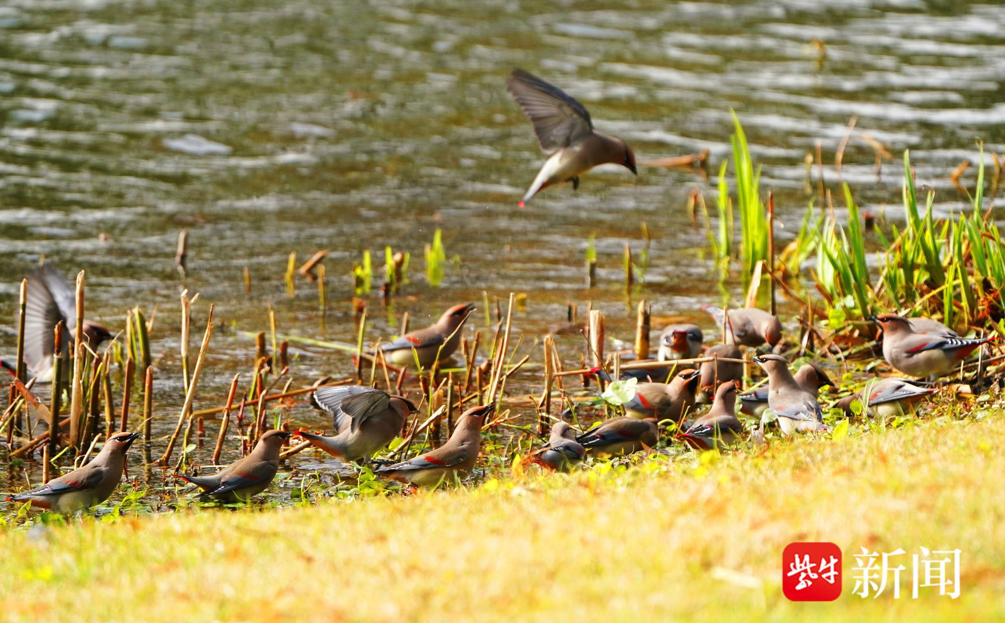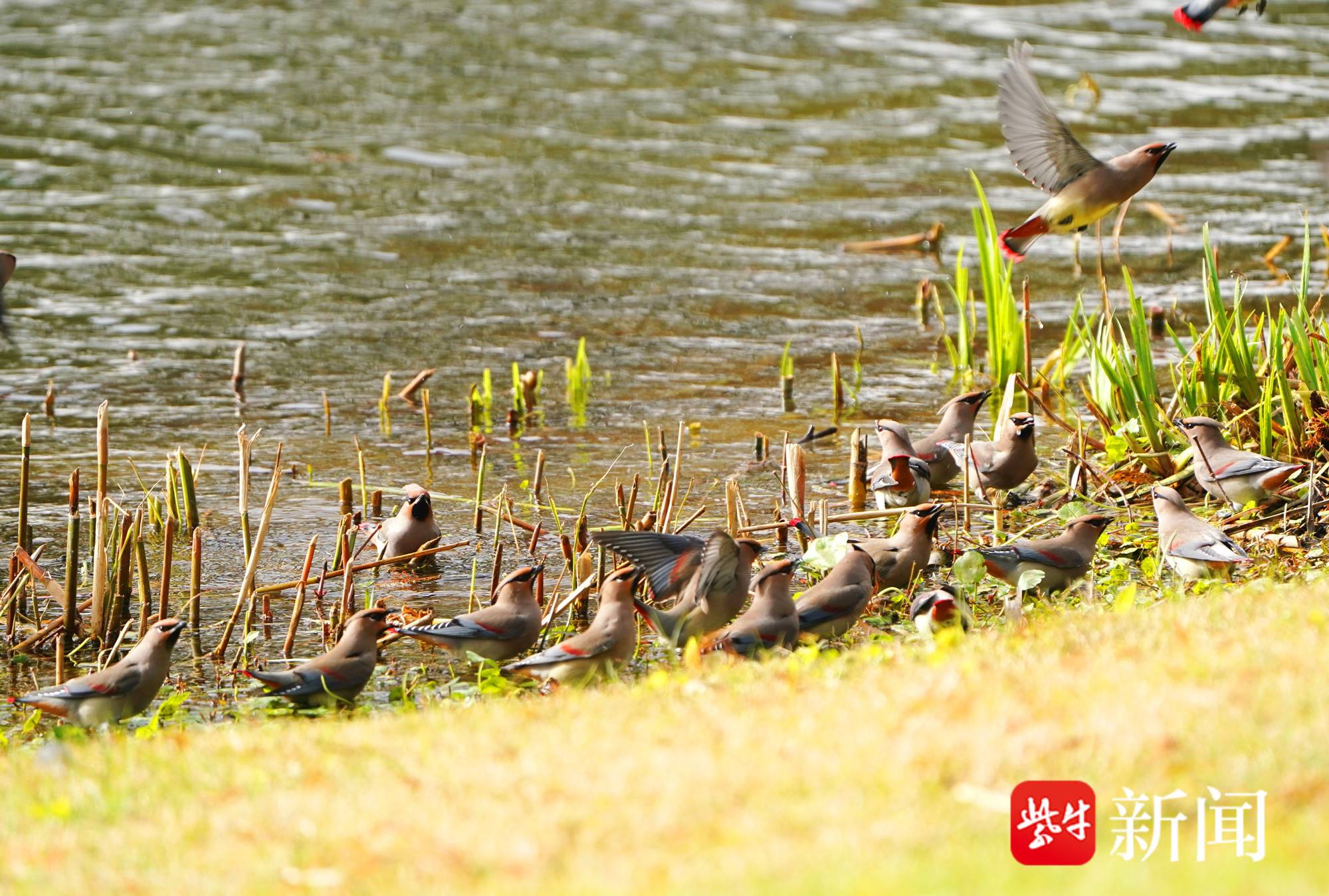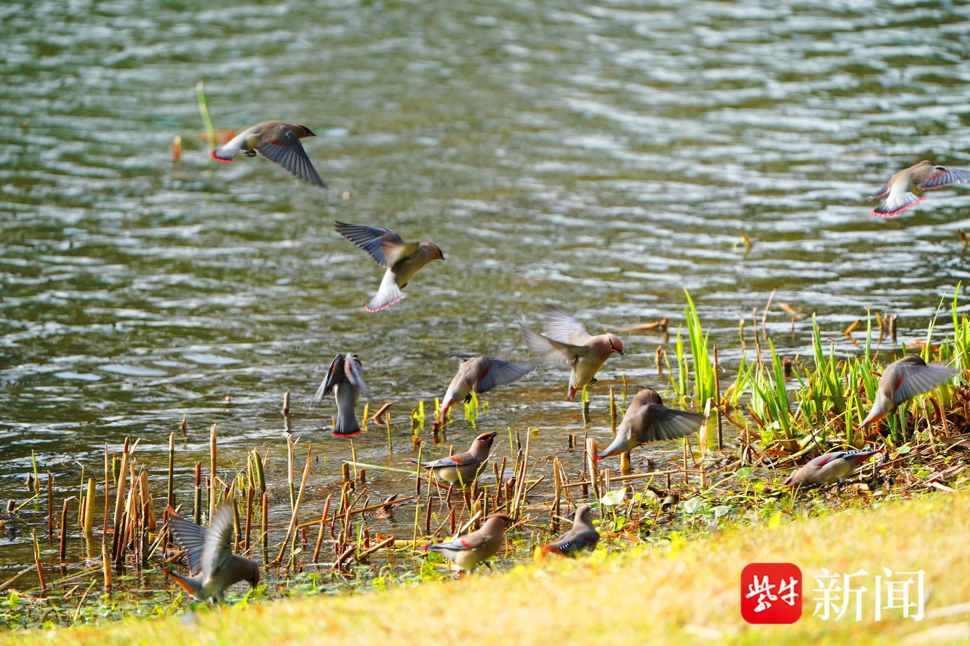 视频|着实罕见!南京情侣园里,上百只太平鸟聚集