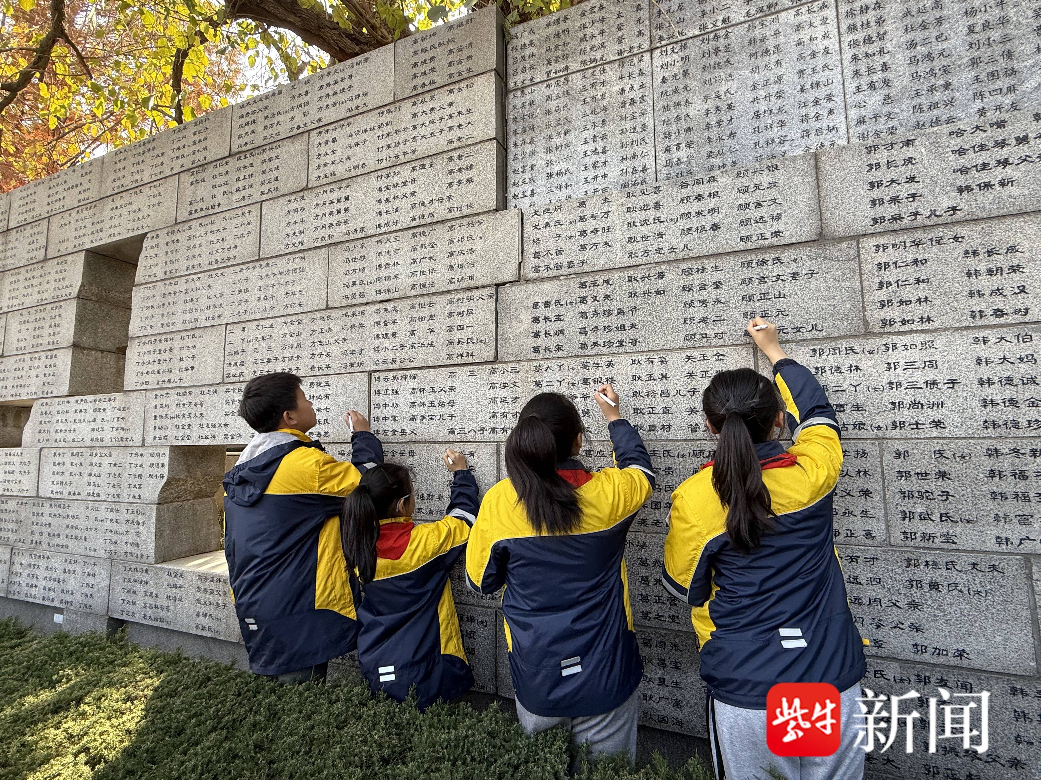 越来越多的年轻人自愿成为历史记忆传承人。幸存者后代代表、学生代表等为南京大屠杀遇难者名单墙上的名字逐一“描新”,寄托哀思。胡静雅是已故南京大屠杀幸存者刘贵祥的外孙女,也是今年8月上岗的第四批历史记忆传承人。作为南京市琅琊路小学雨花分校美术教师,她将外公的血证化作课堂力量,引导学生通过画笔表达对历史的思考与和平的祈愿,将铭记历史、珍爱和平的种子播撒在下一代心中。