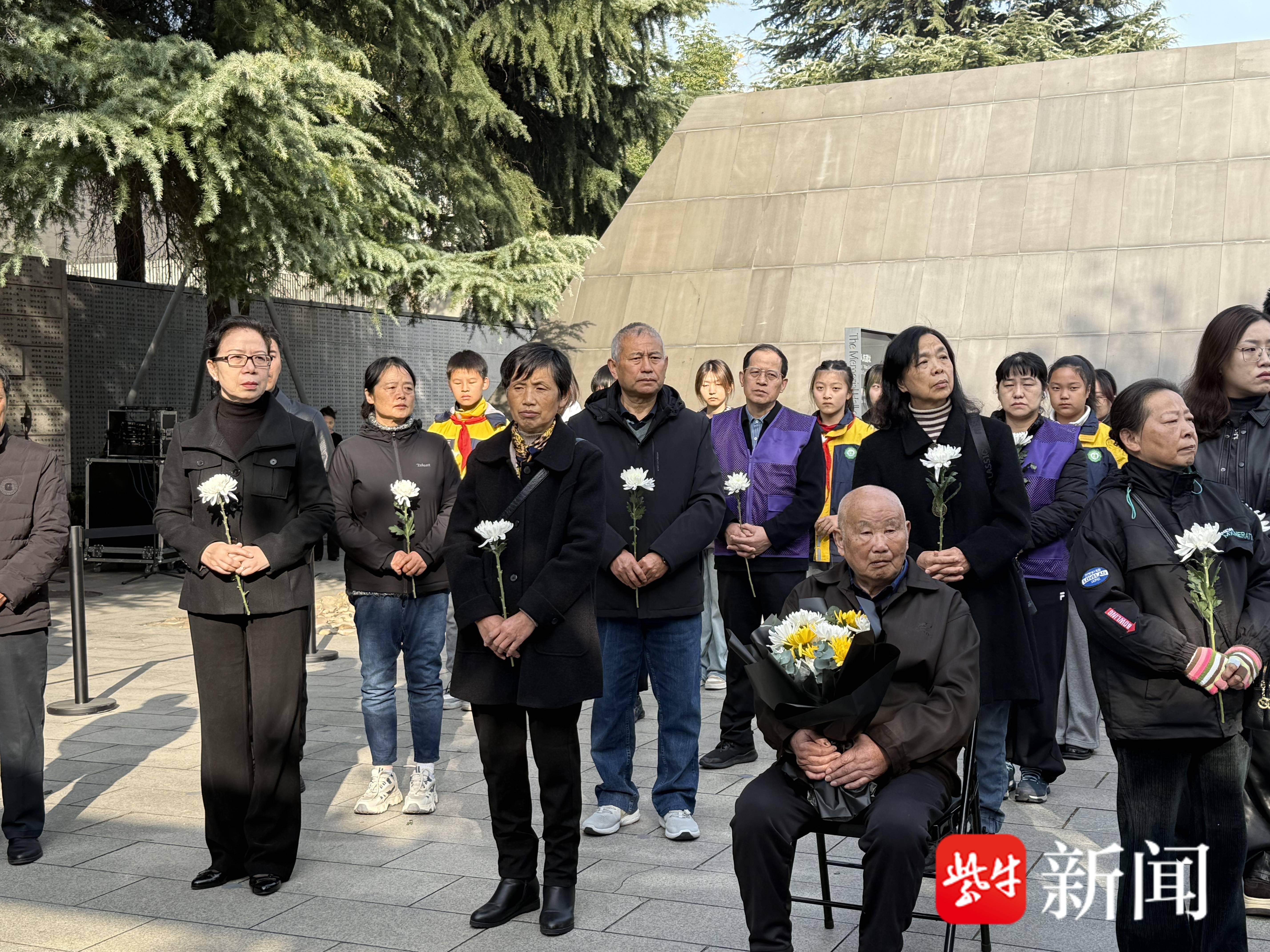 96岁的夏淑琴、91岁的刘民生在家人的搀扶下,缓步走到“哭墙”前。他们身后,是南京大屠杀历史记忆传承人夏媛、胡静雅、张庆等,这支传承人队伍正愈发壮大。