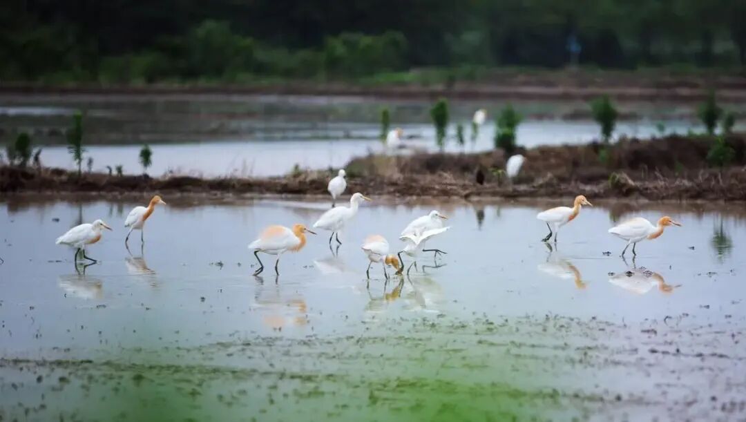 立夏初临,牛背鹭在待耕的水田间踱步觅食。