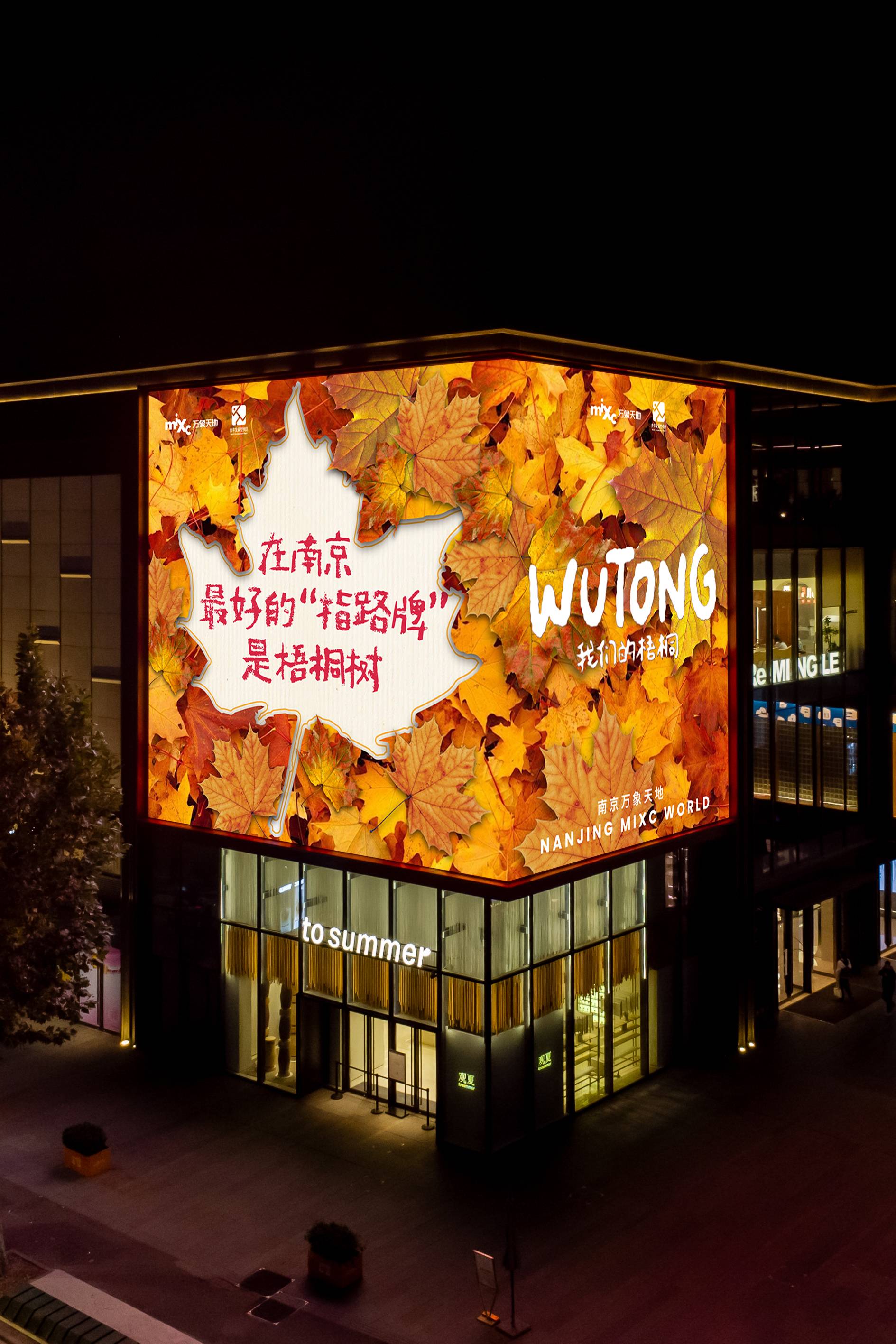 线上,南京万象天地发起了#我记忆里的梧桐 故事征集,从数百份投稿中精选出动人语句,呈现在城市主干道LED大屏与地铁通道LED大屏上。市民关于梧桐的“城市告白”,为这个初冬增添了诗意。