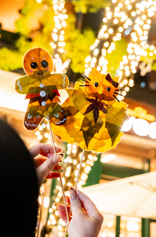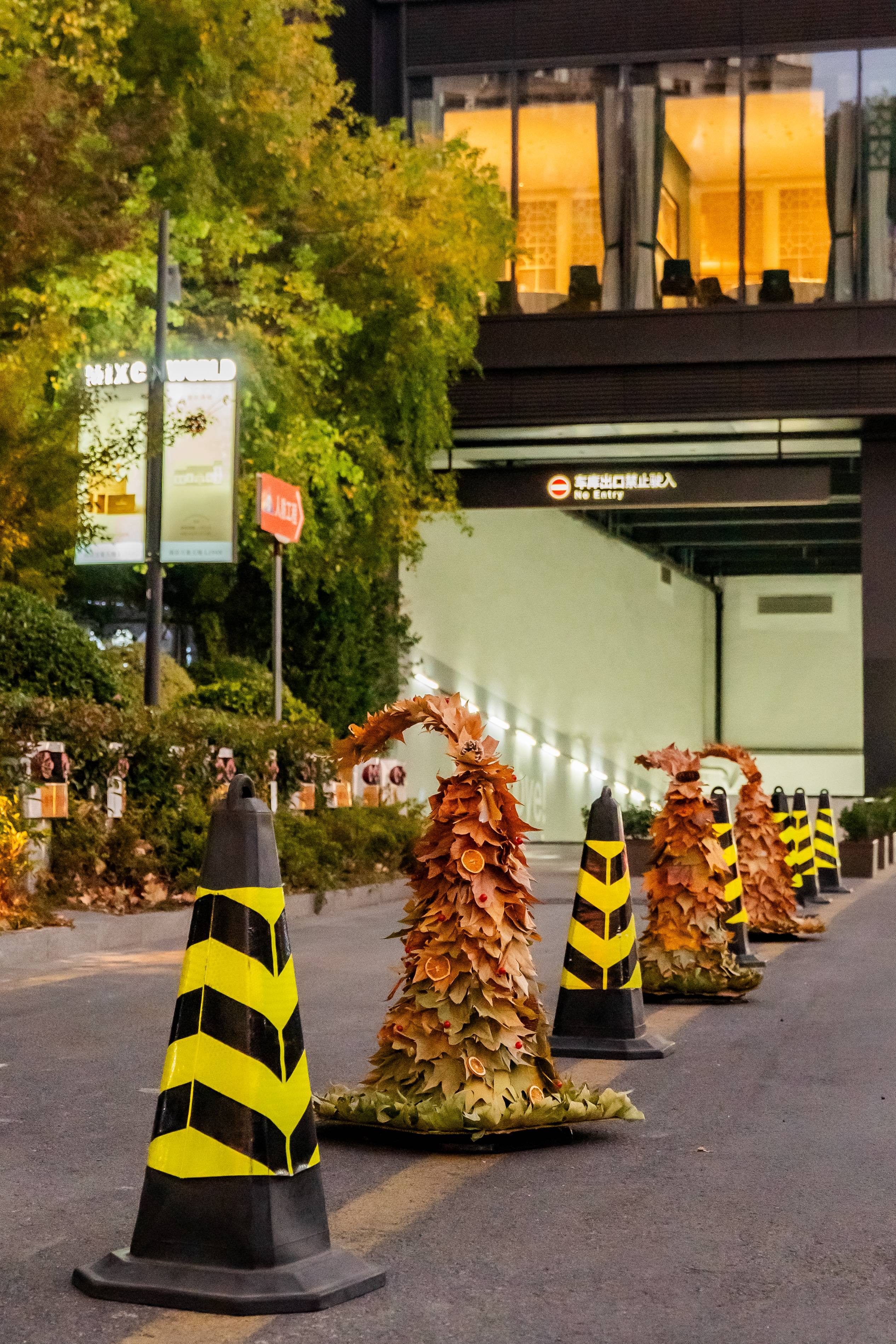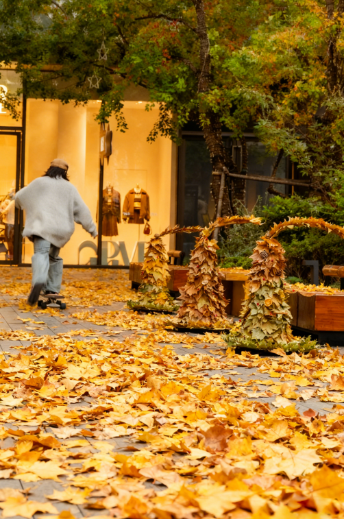 在线下,南京万象天地以独具巧思的创意改造,为城市街景注入秋日氛围。项目团队对道路设施进行了艺术化包装,将路边常见的路锥装扮成“秋日梧桐帽”,趣味度拉满。同时,结合卡通IP形象,推出梧桐叶造型的“树叶子糖葫芦”,迅速成为社交平台上的热点话题。