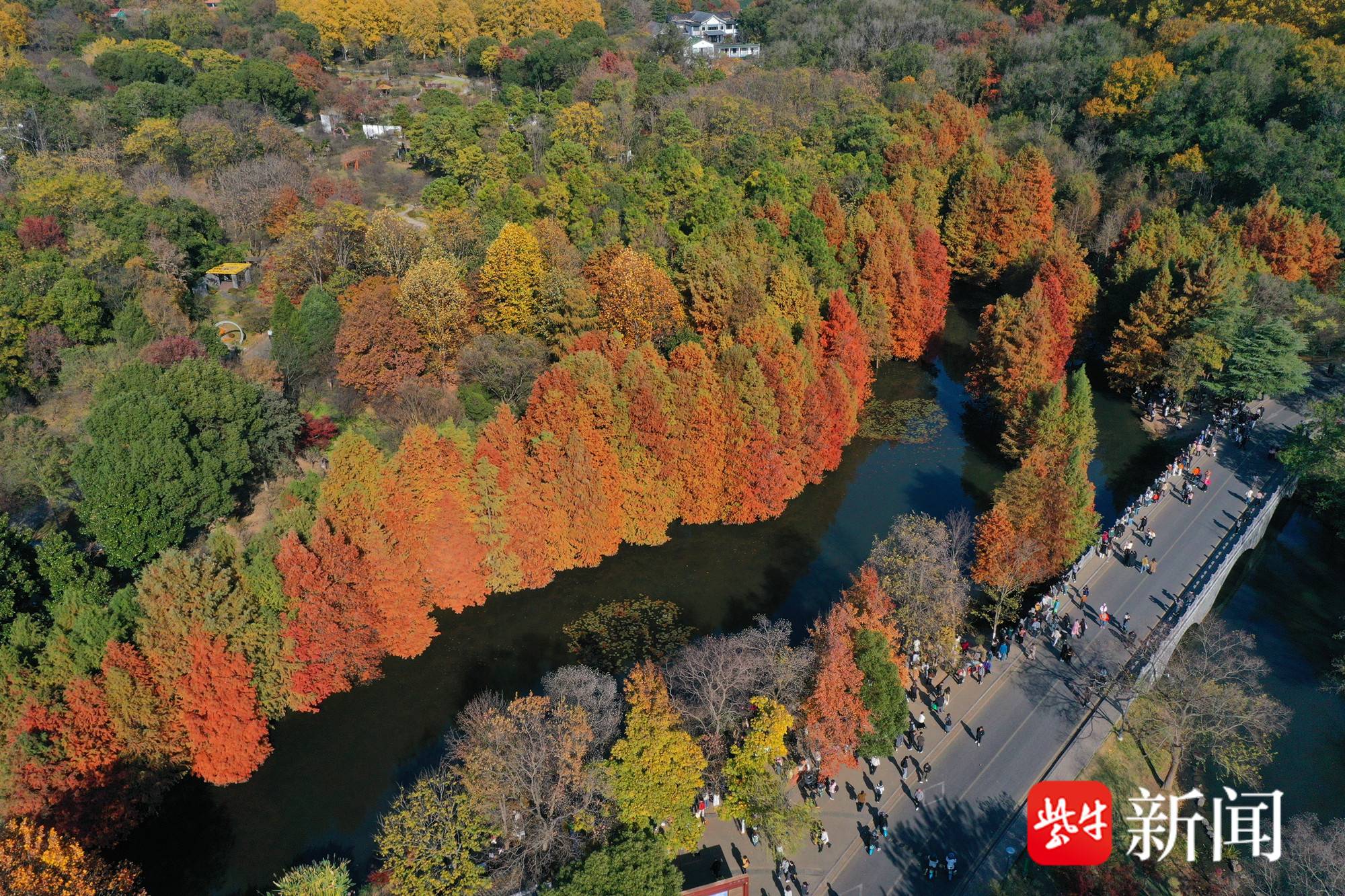 眼下的南京紫金山,层林尽染,五彩斑斓,而初冬的燕雀湖附近,杉树都变成了红色,展现了它华丽惊艳的一面,或色彩迷人,或静谧清冷,或神秘莫测,仿佛走进色彩斑斓的童话世界。