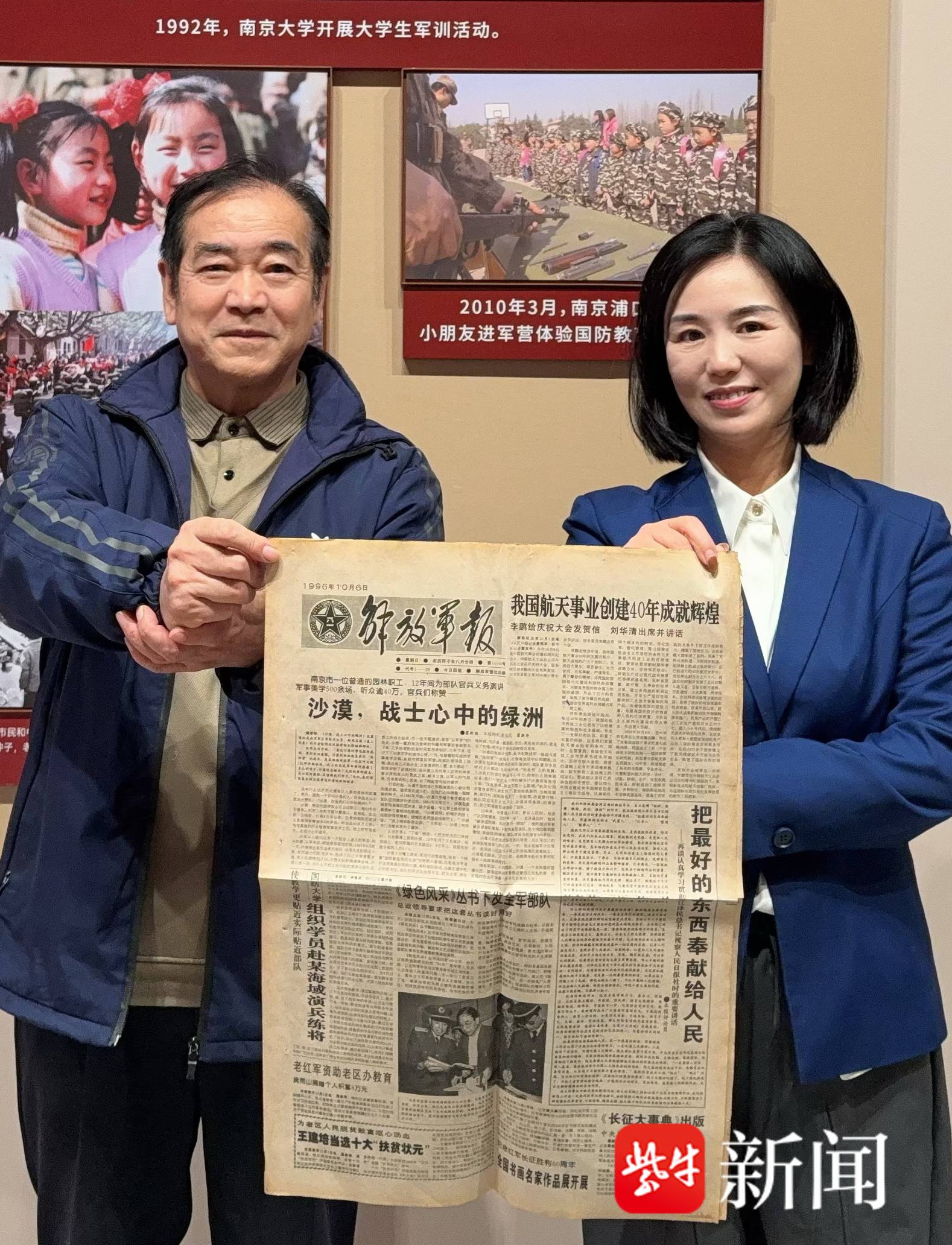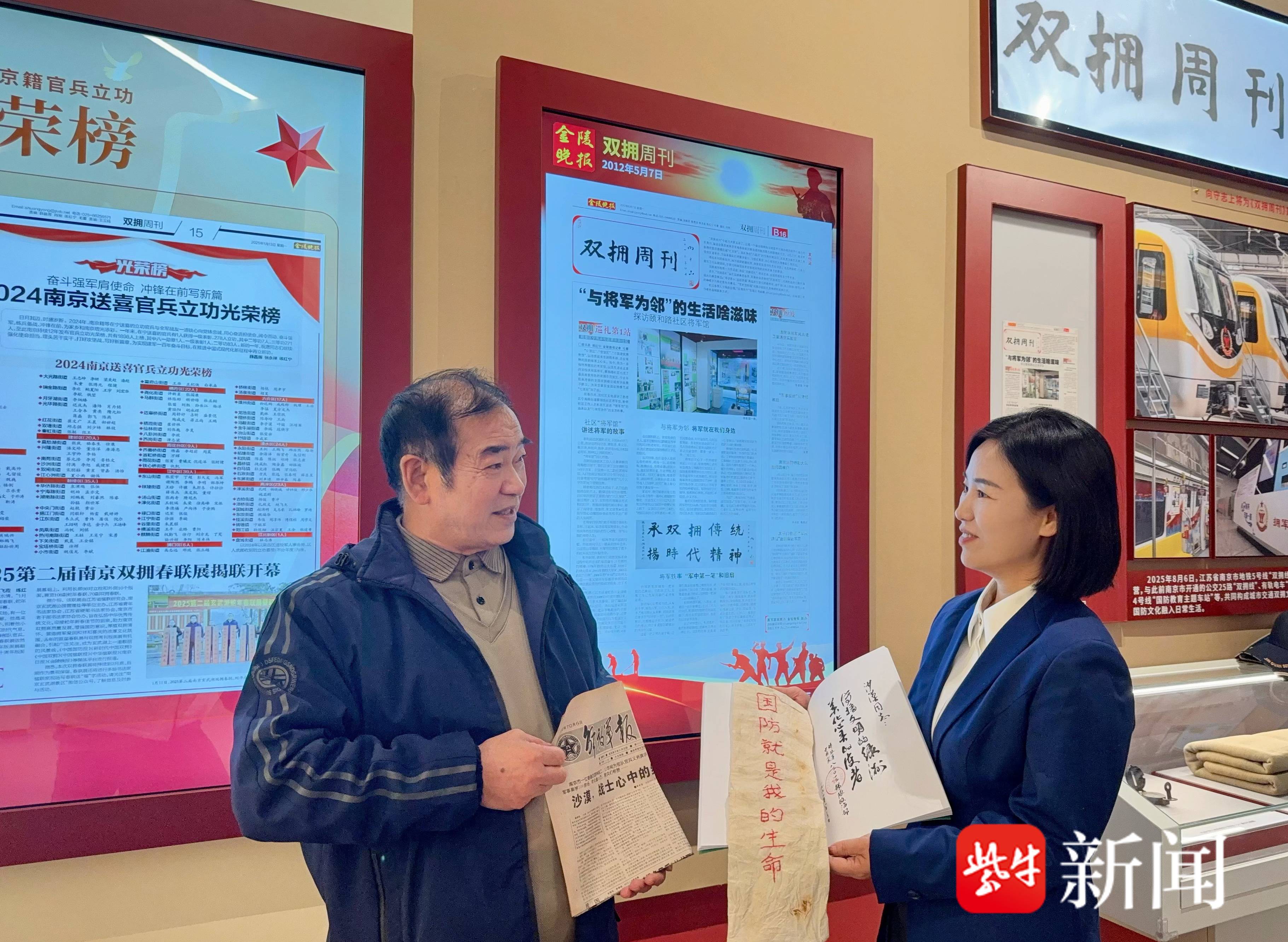 据了解,今年10月1日试开放的南京双拥文化馆引发关注,参观者和捐赠者络绎不绝,《扬子晚报》等众多媒体聚焦报道,原南京军区人民前线报社摄影记者许家声寻找拥军小姐妹的故事直接刷屏。沙漠看到报道后深受感动,从外地回宁后,就翻箱倒柜寻找老报纸。