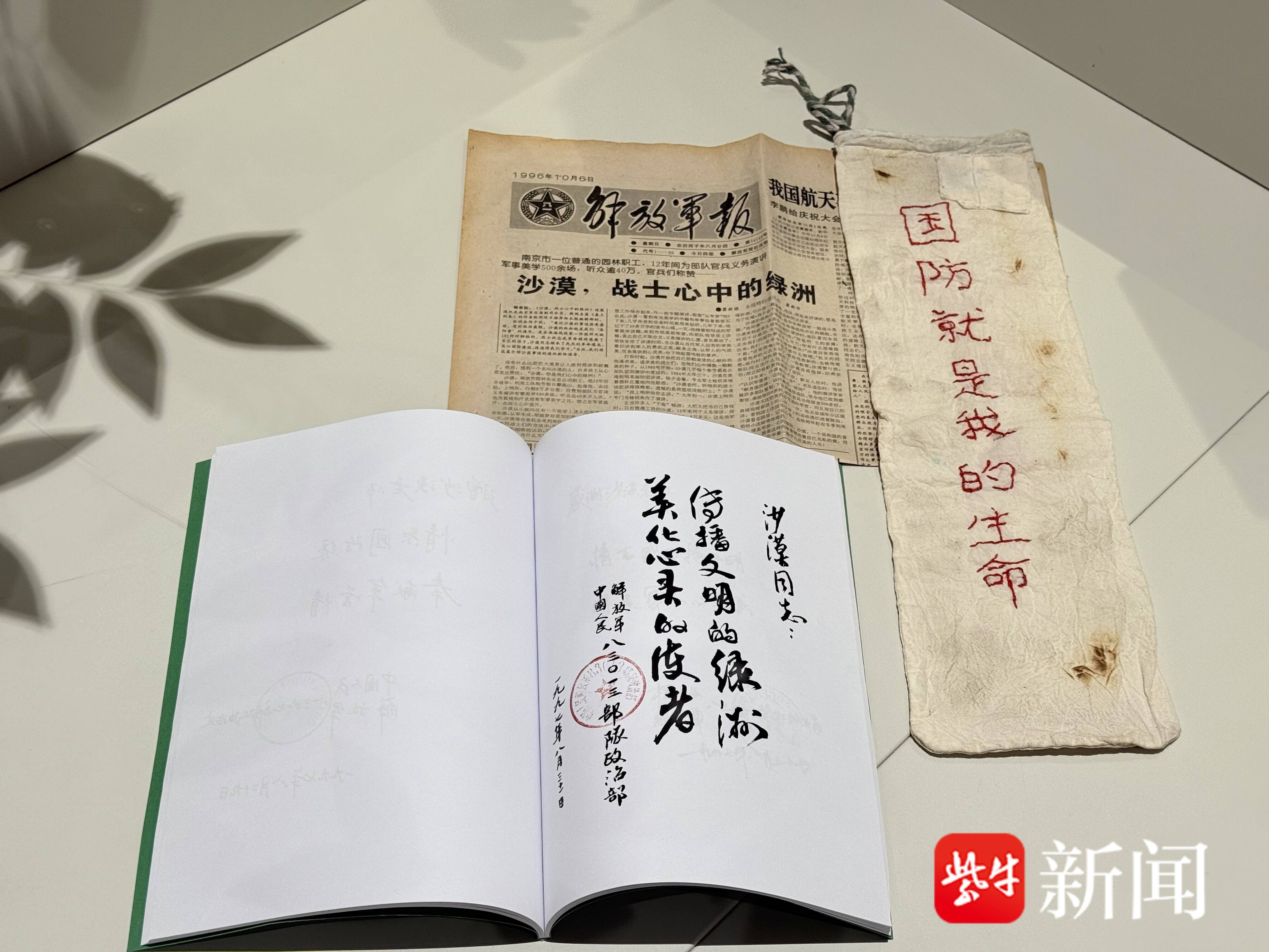 扬子晚报网12月4日讯(通讯员 张莉 练红宁 记者 闫春旭)12月4日,位于南京国防园的南京双拥文化馆来了一位特别的观众,他是坚持拥军44年的烈士后代、原南京园林实业总公司退休职工沙漠,参观后向馆方捐赠了自己相伴44年的拥军证物:一张29年前刊登他拥军事迹头版头条的《解放军报》,一件他44年前开始使用的干粮袋,还有一本各部队为沙漠留字的小册子,为双拥文化馆又添新展品。