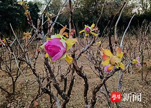 扬子晚报网12月4日讯(通讯员 黄尖宣 徐福庚 记者 闫春旭)12月4日,盐城市亭湖区黄尖牡丹园牡丹绽放,是冬日里难得一见的景色,引来不少游客打卡拍照。
